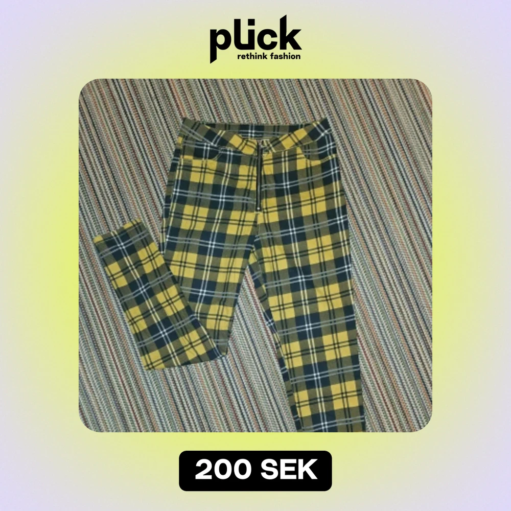Byxorna är rutiga i svart och gul färg. De har inga användbara fickor framme men när back är fickorna användbara.