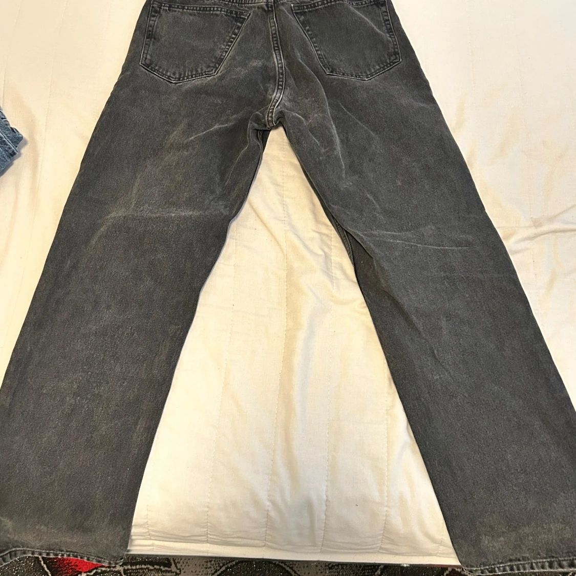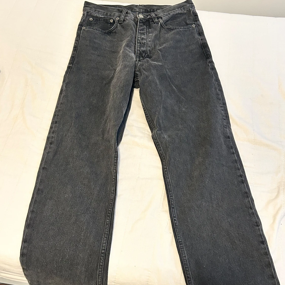 Snygga svarta jeans med rak passform och klassisk femficksdesign. Jeansen har en något tvättad look som ger en cool vintage-vibe. Perfekta till sneakers eller boots och funkar året runt. Materialet är robust denim som håller formen.