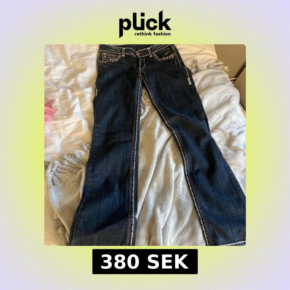 SUPERSNYGGA jeans i mörkblå med vita sömmar och fina detaljer som jag kan skicka närmare bild på🫶🏼