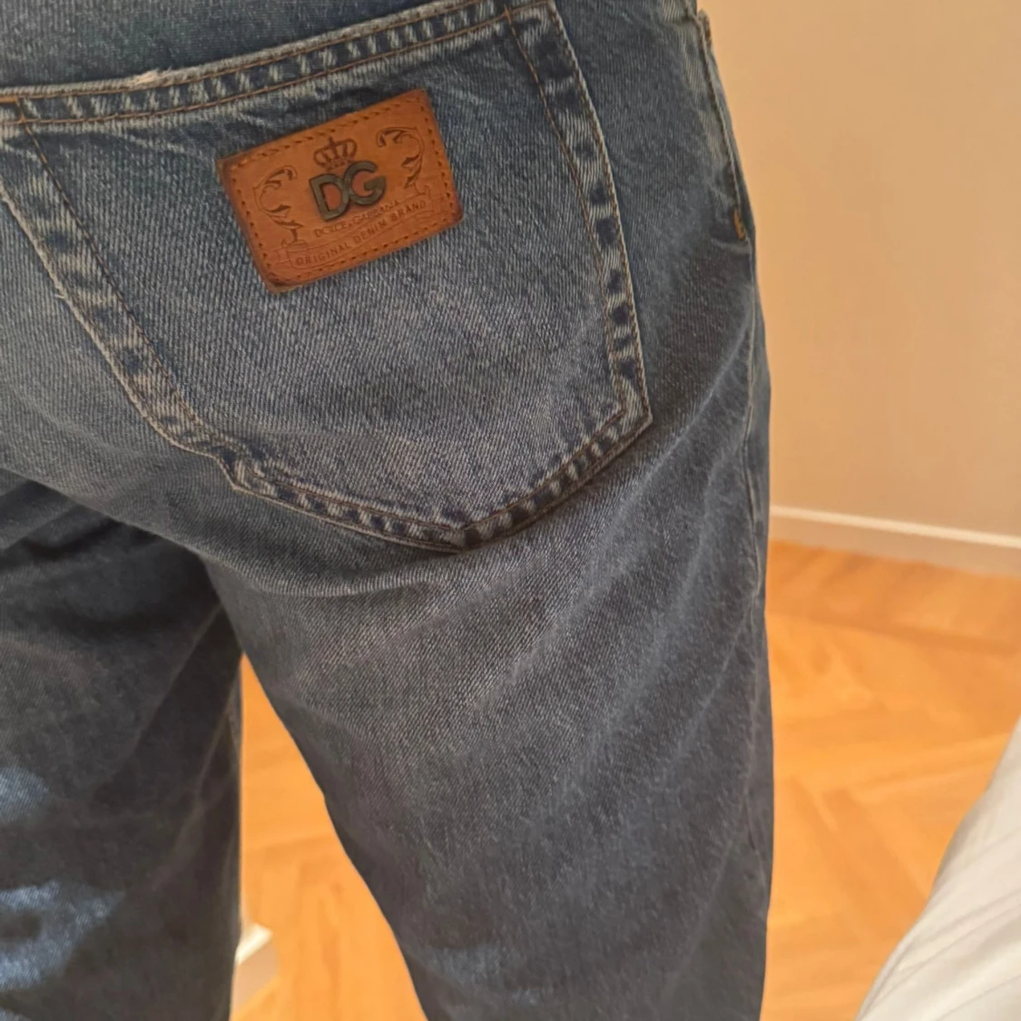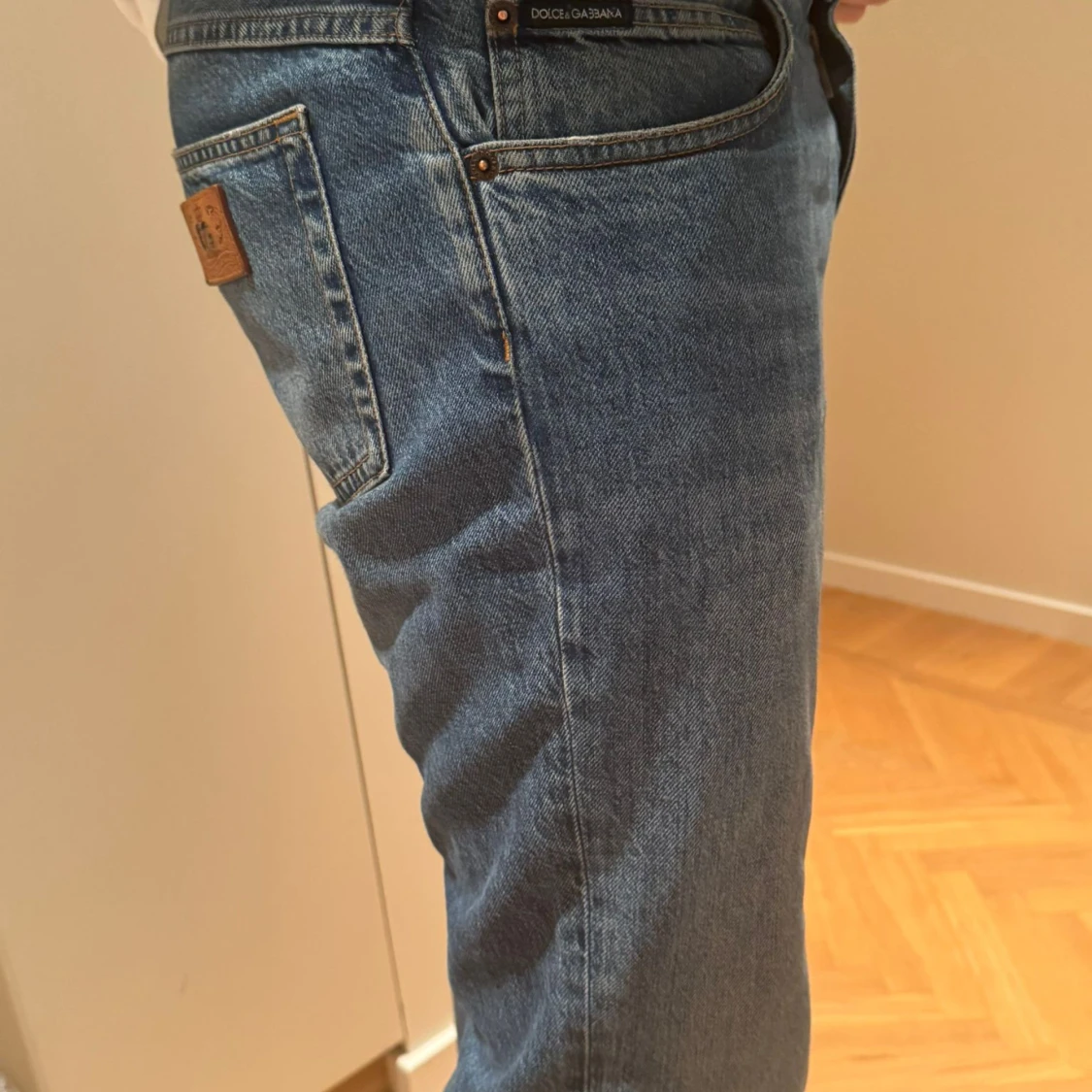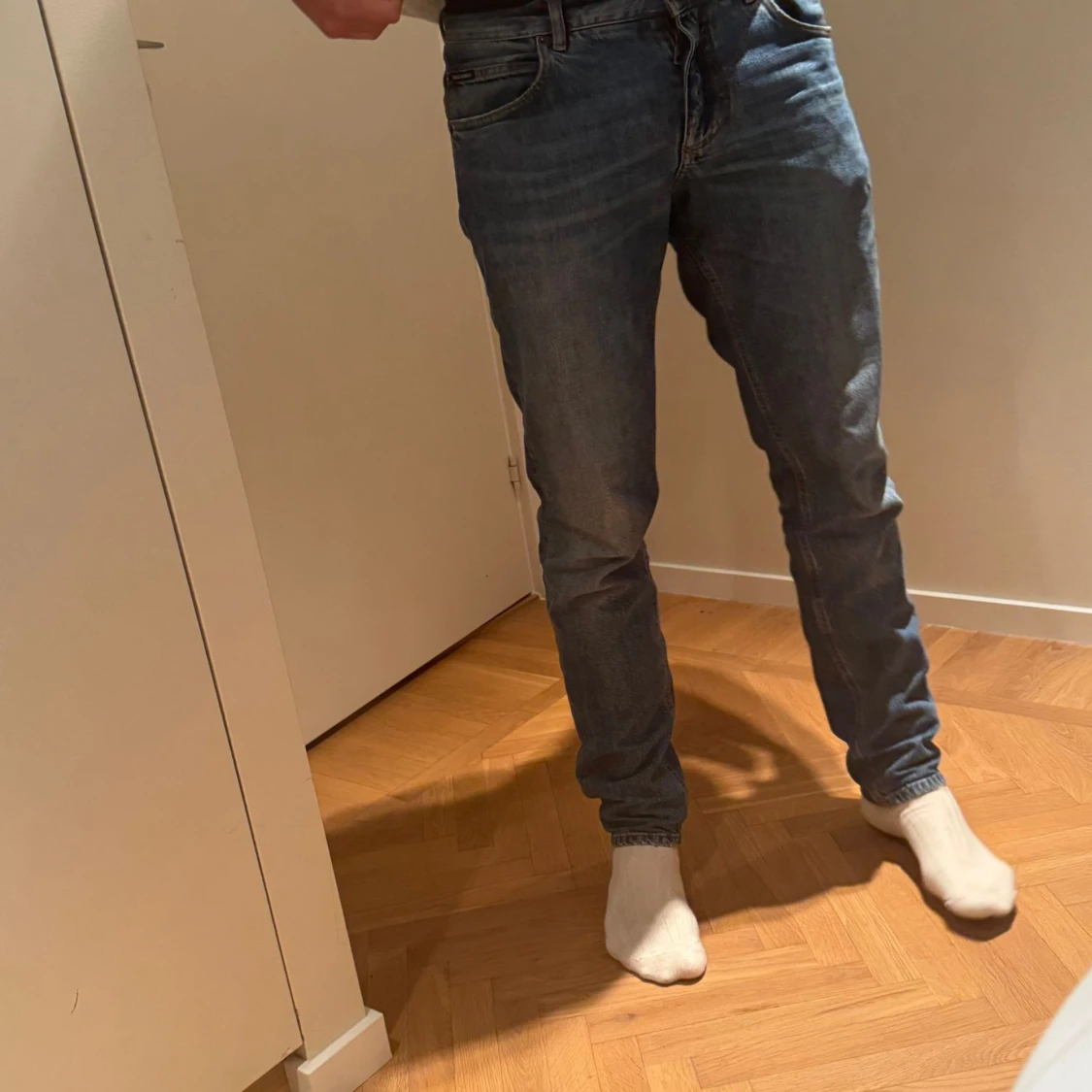 Snygga blå jeans från Dolce & Gabbana med klassisk femficksdesign. Jeansen har en normal passform och är tillverkade i slitstarkt denim. Perfekta för en stilren look. Jag på bilden är 189 cm men den är lite för små för mig.