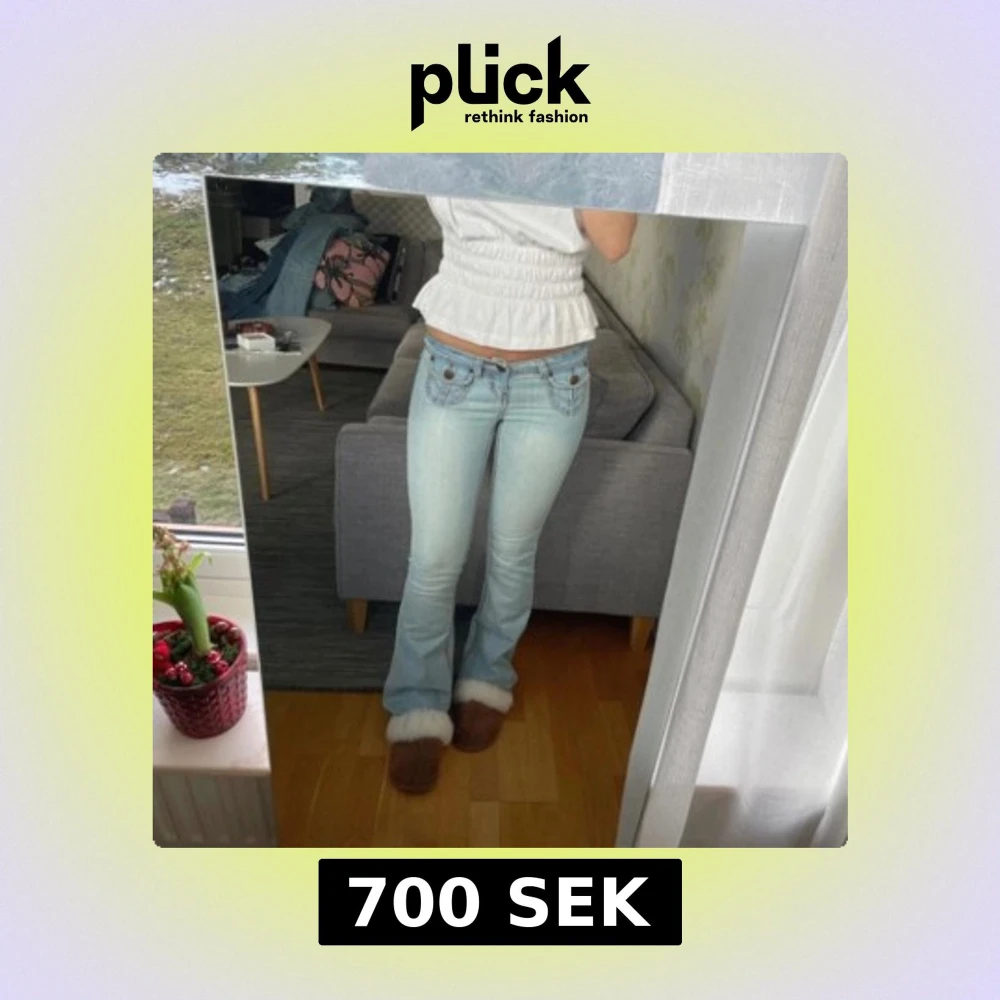 Fina ljusblå jeans med fickor bak och fram, midjemått 37 cm innerbenslängd 81 cm❤️ pris går att diskutera