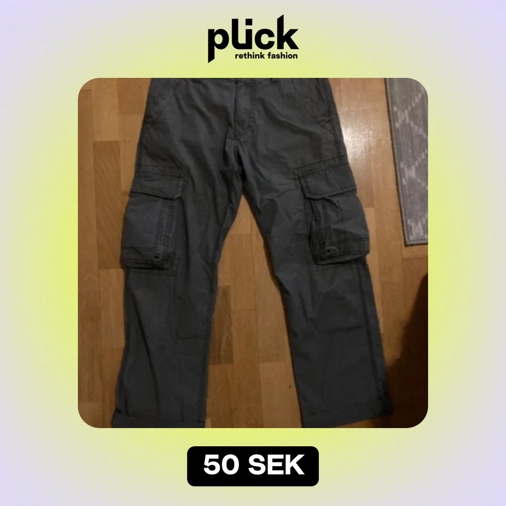 Gråa cargo byxor, med väldigt fin passform.
