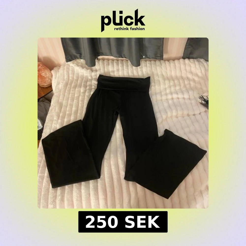 Säljer ett par svarta yoga pants med bred linning och riktigt skön stretch. Byxorna har ett wide fit och är tillverkade i mjukt syntetmaterial som sitter bekvämt mot kroppen. Byxorna är helt nya jag har inte använt dom nått.