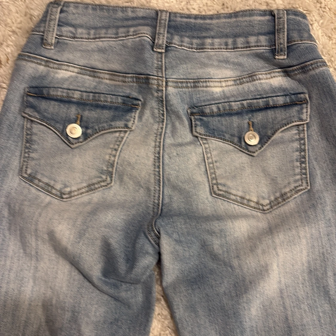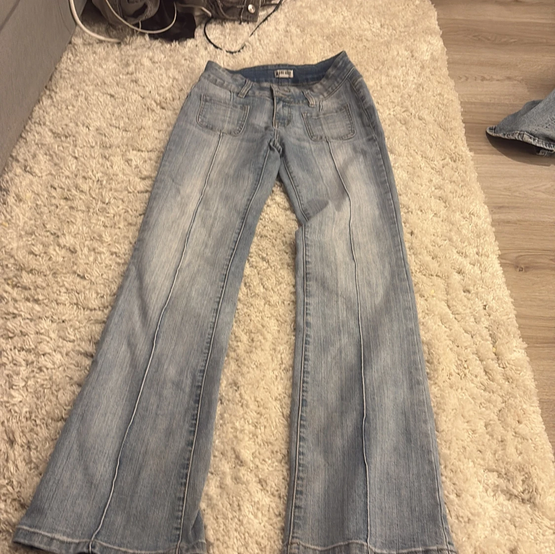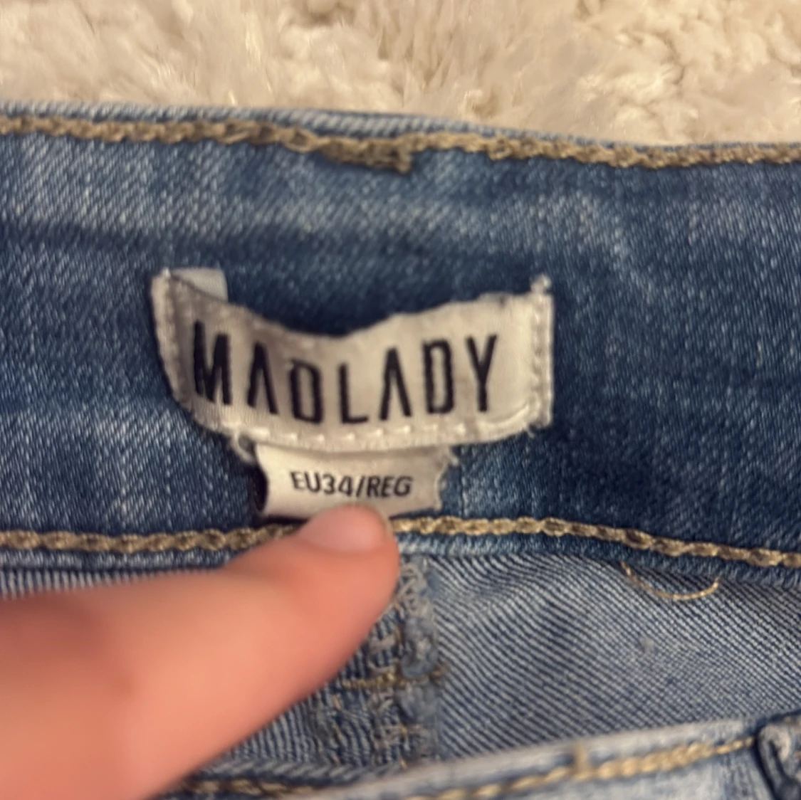 Säljer ett par ljusblå bootcut jeans från Madlady i storlek EU34. Jeansen har klassisk femficksdesign, snygga bakfickor med knapp och slitningar framtill för en cool vibe. Tillverkade i jeansmaterial med normal passform och breda ben.