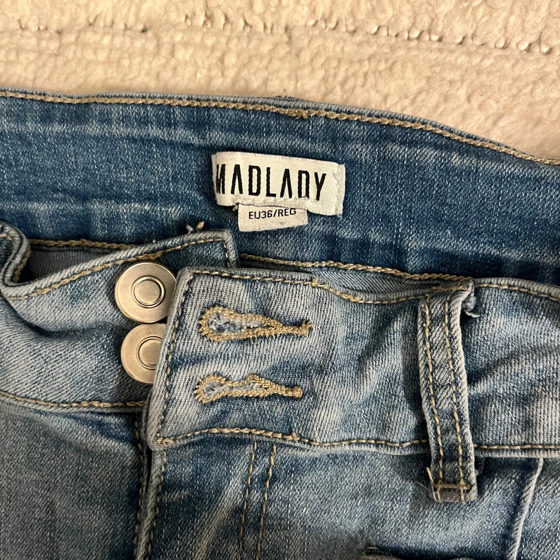 Säljer dessa jeans från Madlady då de inte kommer till användning. De är uppsydda då de var för långa för mig. Jag är 155 cm lång!