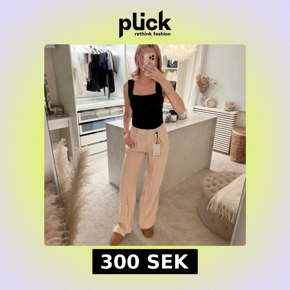 Superfina lösa kostym liknande byxor från madlady! Aldrig använda, med prislapp kvar! Perfekta till våren/ sommaren då de är tunna och sköna🤎🤎 jag är 173 cm för referense! De är 34 i längd🤎🤎