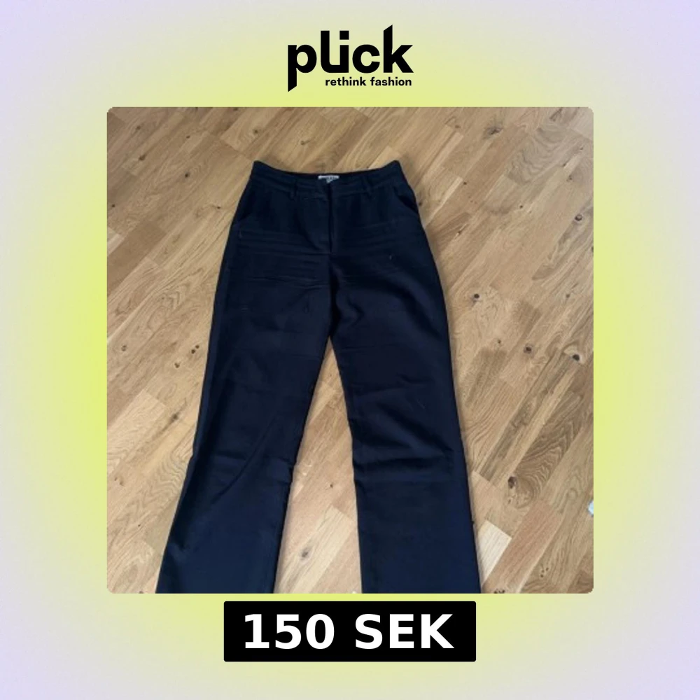 Säljer ett par svarta kostymbyxor från Madlady i storlek EU36/L34. Byxorna har normal passform, raka ben och klassisk midja med hällor för bälte och diskret dragkedja framtill. Perfekta för en stilren look.