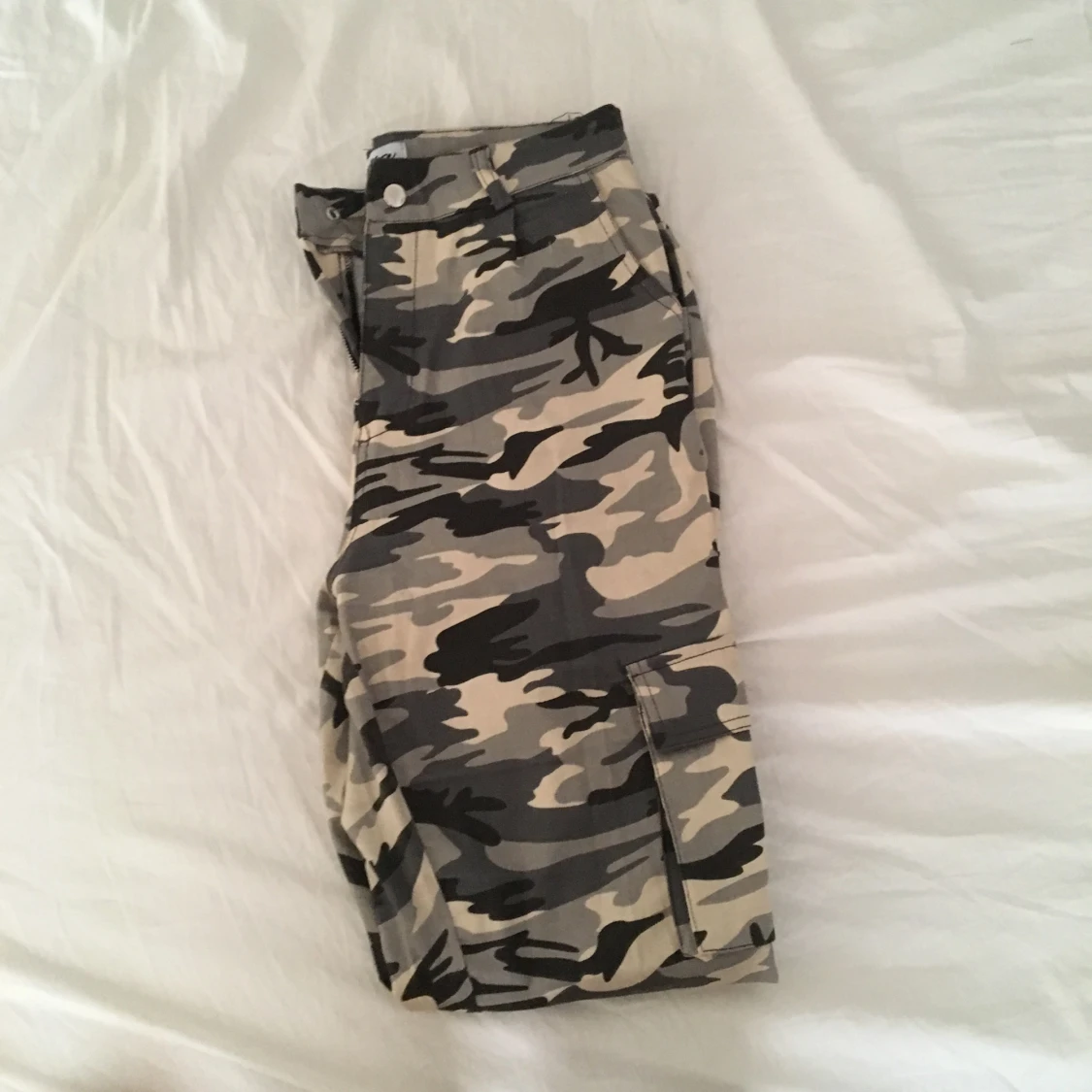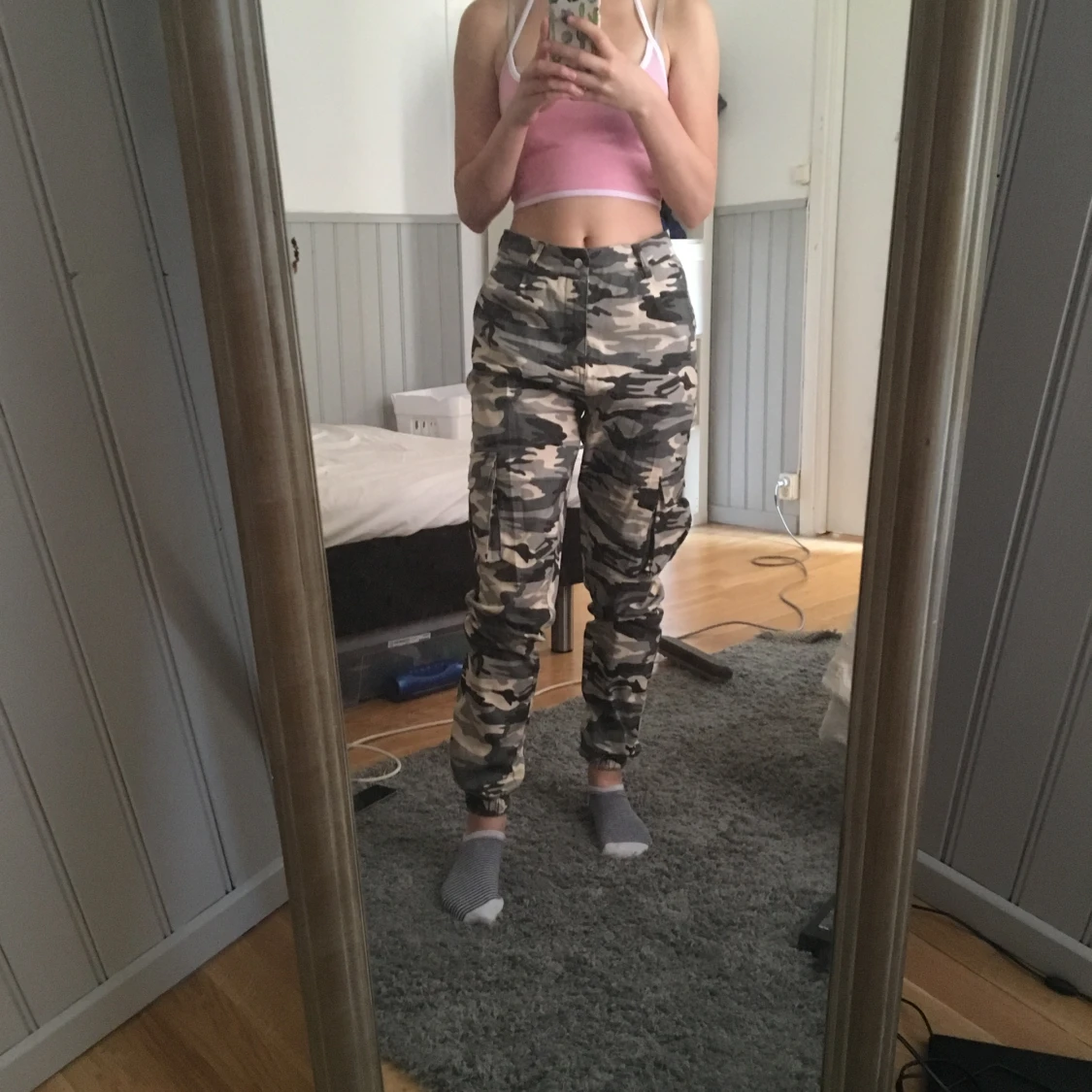 Ett par Camo byxor från Madlady. Säljer då dom är för stora för mig. Aldrig använda men skit snygga. Köparen står för frakt. Kan mötas i Stockholm Lördag-måndag.. ny pris 499kr. Kan pruta lite men inge skambud tack!