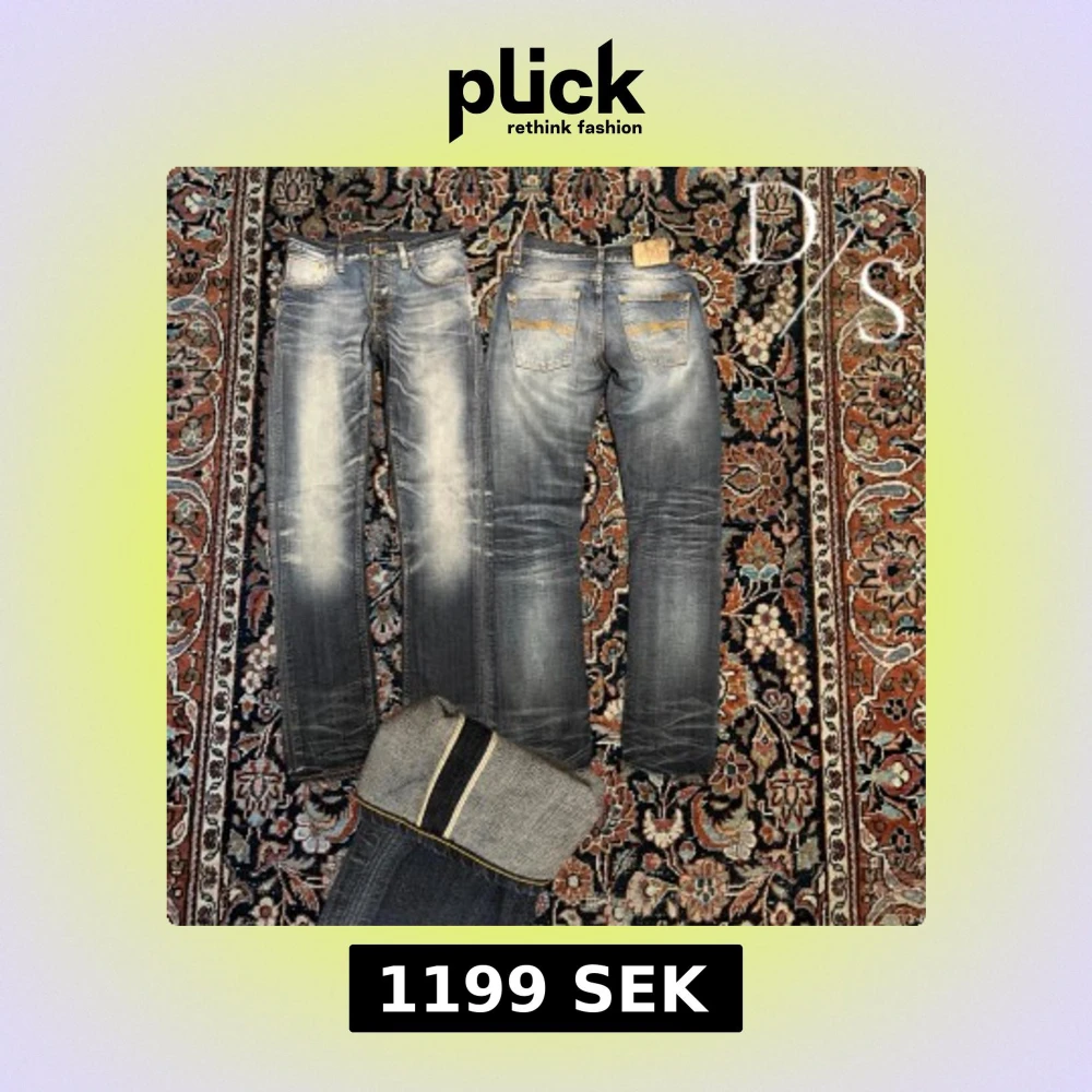 För feta nudie Selvedge jeans! Dessa är modellen grim Tim, Simon replica. De är riktigt fina med en fin tvätt som tar tid att bygga upp! Dessa är extremt eftertraktade därav priset! Mått: Midja: 38cm Längd: 101cm Benöppning: 16,5cm