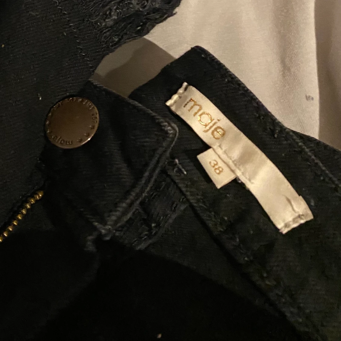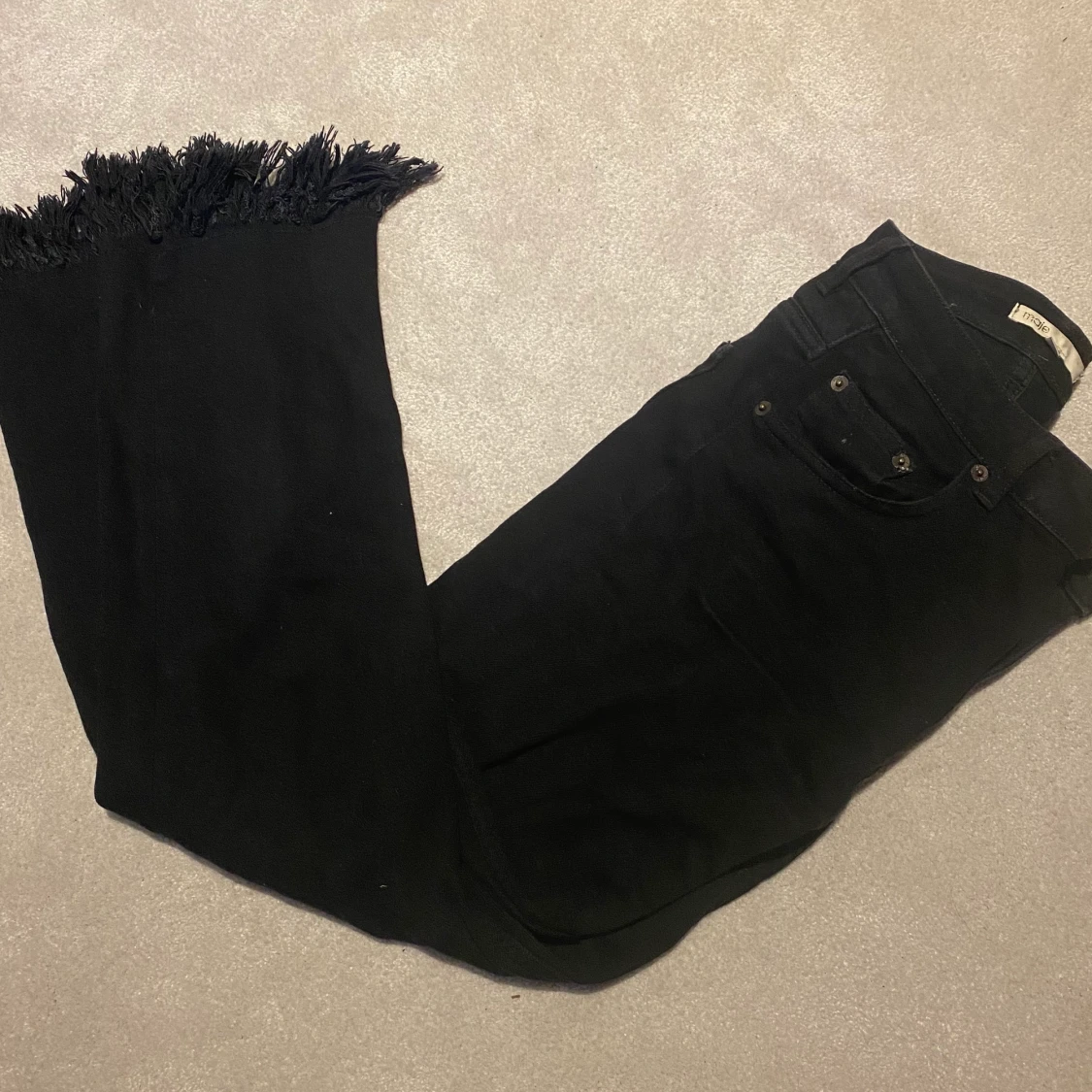 Dem perfketa svarta jeansen med coola slitningar nertill. Det är storlek 38, dem är stretchiga och så sköna. Köpte dem för 2000kr, använda ca 10 ggr.
