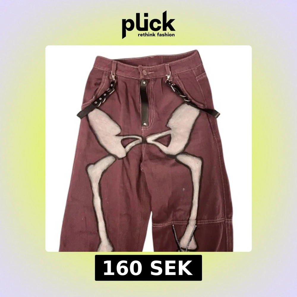 Byxor som är målade av mig för ca 4-5 år sen :) Även lite detaljer som sitter fast i öglorna för bälten. Lite skavanker här och där, som blåa små färgfläckar och lim på ena bakfickan på kanterna från en gammal detalj som ramlat av, men det märks inte av så mycket :) Även på grund av dessa fel så har jag lite högre pris då jag målat benen helt för hand och det tog en stund :) Har försökt redigera bilderna så bra jag kan så färgen på byxorna ser så likt ut som i verkligheten som möjligt
