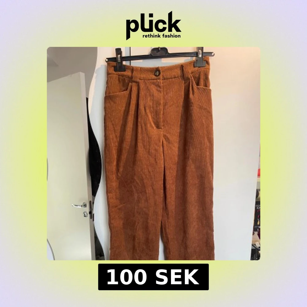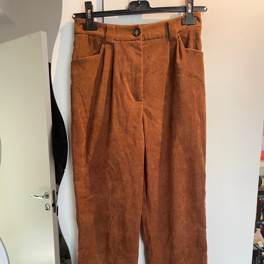 Snygga manchesterbyxor med raka ben och hög midja. Byxorna har klassiska fickor fram, bälteshällor och stängs med knapp och dragkedja. Perfekta för dig som gillar retrovibbar och vill ha en chill men stilren look. (OBS! Den är köpt secondhand och jag uppmuntrar ingen att bidra till fast fashion.)