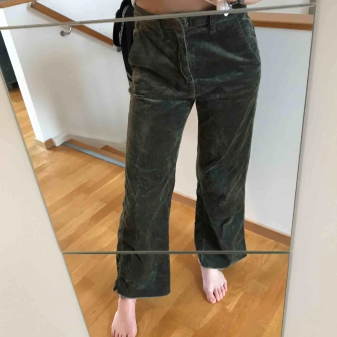 Gröna manchesterbyxor från Zara, knappen har ramlat av men går att sy tillbaka utan problem. Säljer då de är lite för stora för mig. Köparen står för frakt.