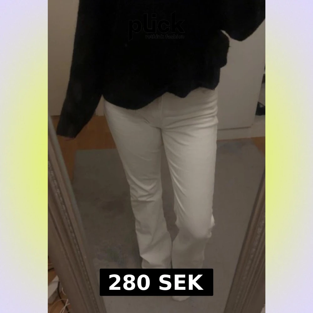 Säljer mina nästan helt oanvända vita bootcut jeans! De är från Mango och är knappt använda. Jag skulle säga att de är midwaist. De är storlek 38 men passar mig som brukar ha 36. Hör av er för fler bilder eller vid frågor 💞