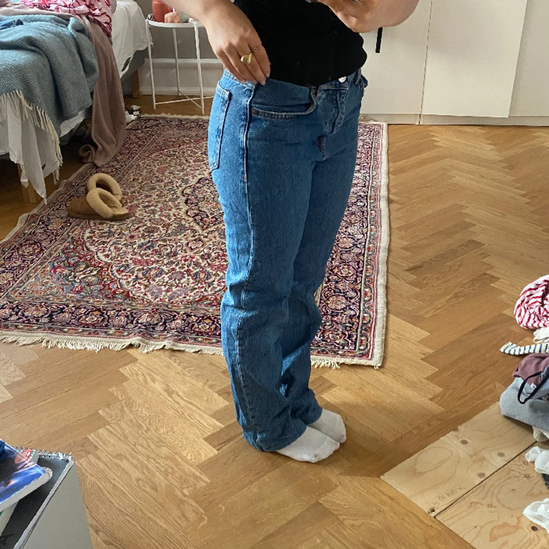 Raka jeans med medelhög midja i en lite mörkare blå färg. De är från Mango där ordinariepriset var 499kr. De är använda ganska mycket men är i princip som nyskick. Storleken är 38. Skriv om ni är intresserade eller har nån fråga!💘