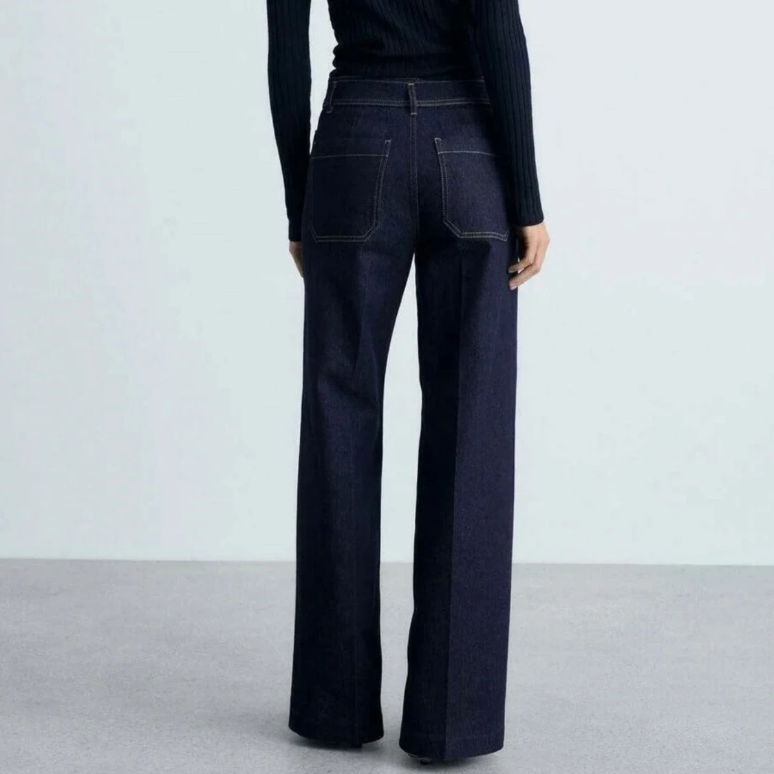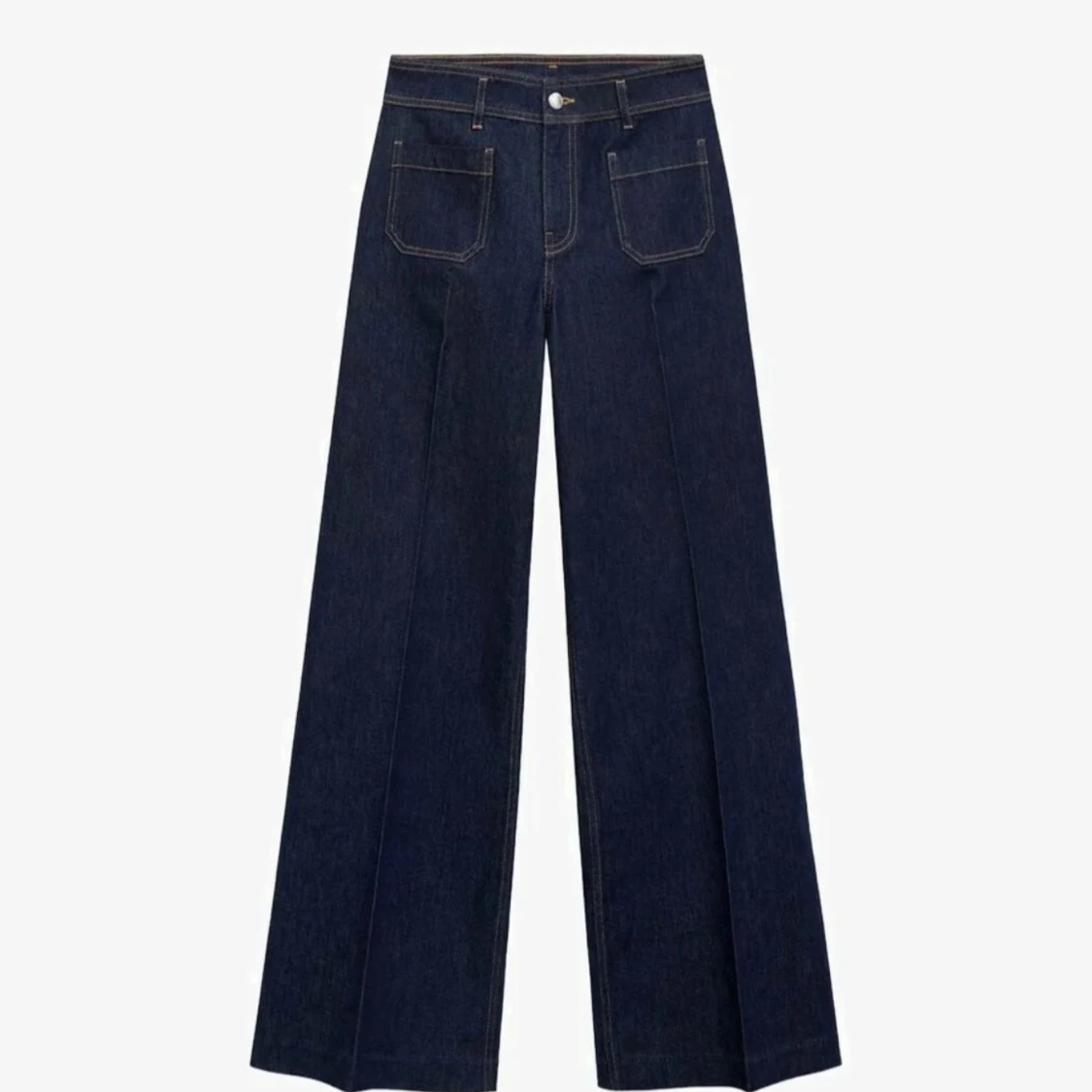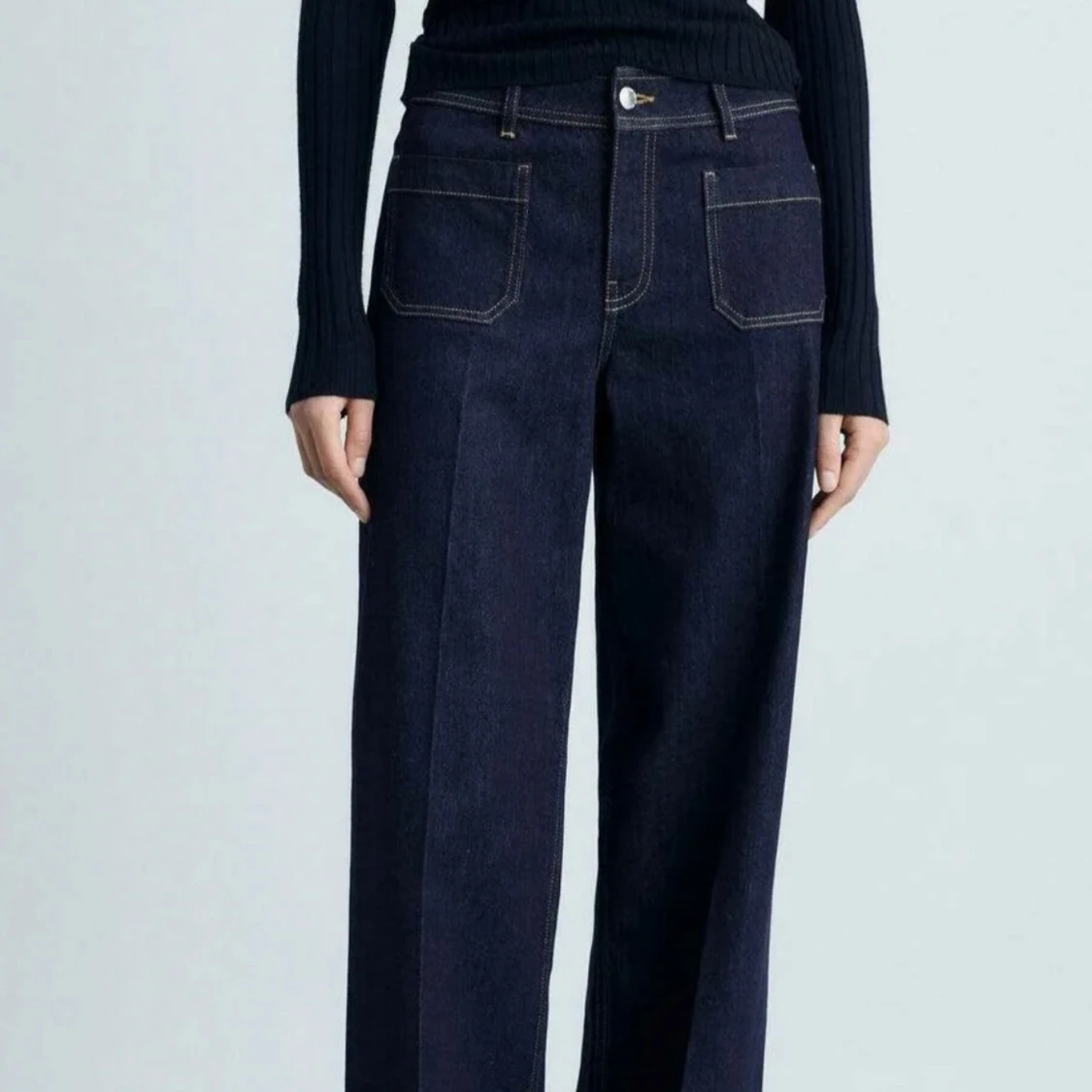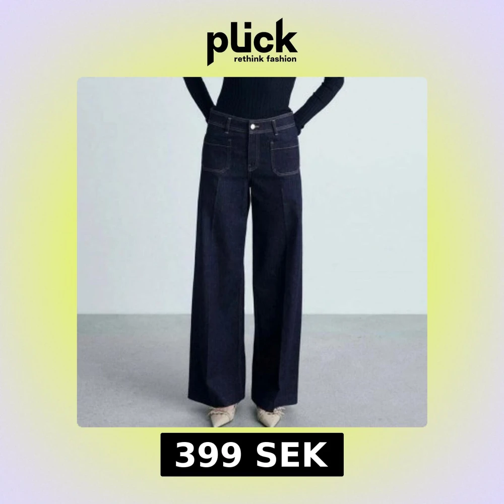 Mörkblå jeansbyxor med vida ben