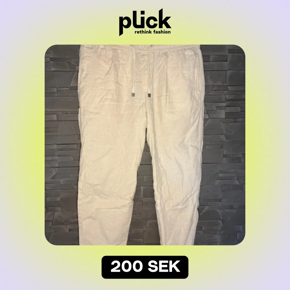 Ett par bekväma beige linnebyxor med snören i midjan. Byxorna har en avslappnad passform och två bakfickor. Linnebyxorna är sparsamt använda och i mycket bra skick! Nypris 599kr