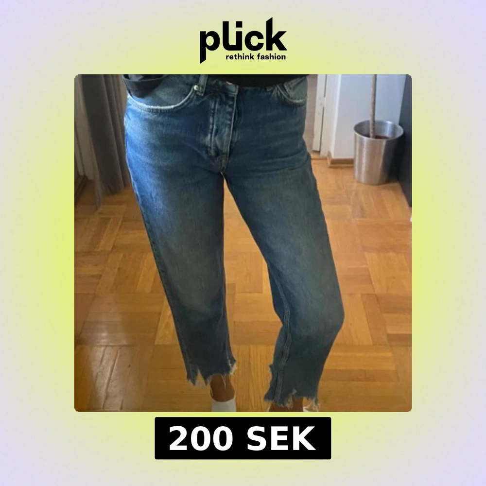 blå jeans från MNG i rak modell med råa, fransiga benslut. Storlek 36