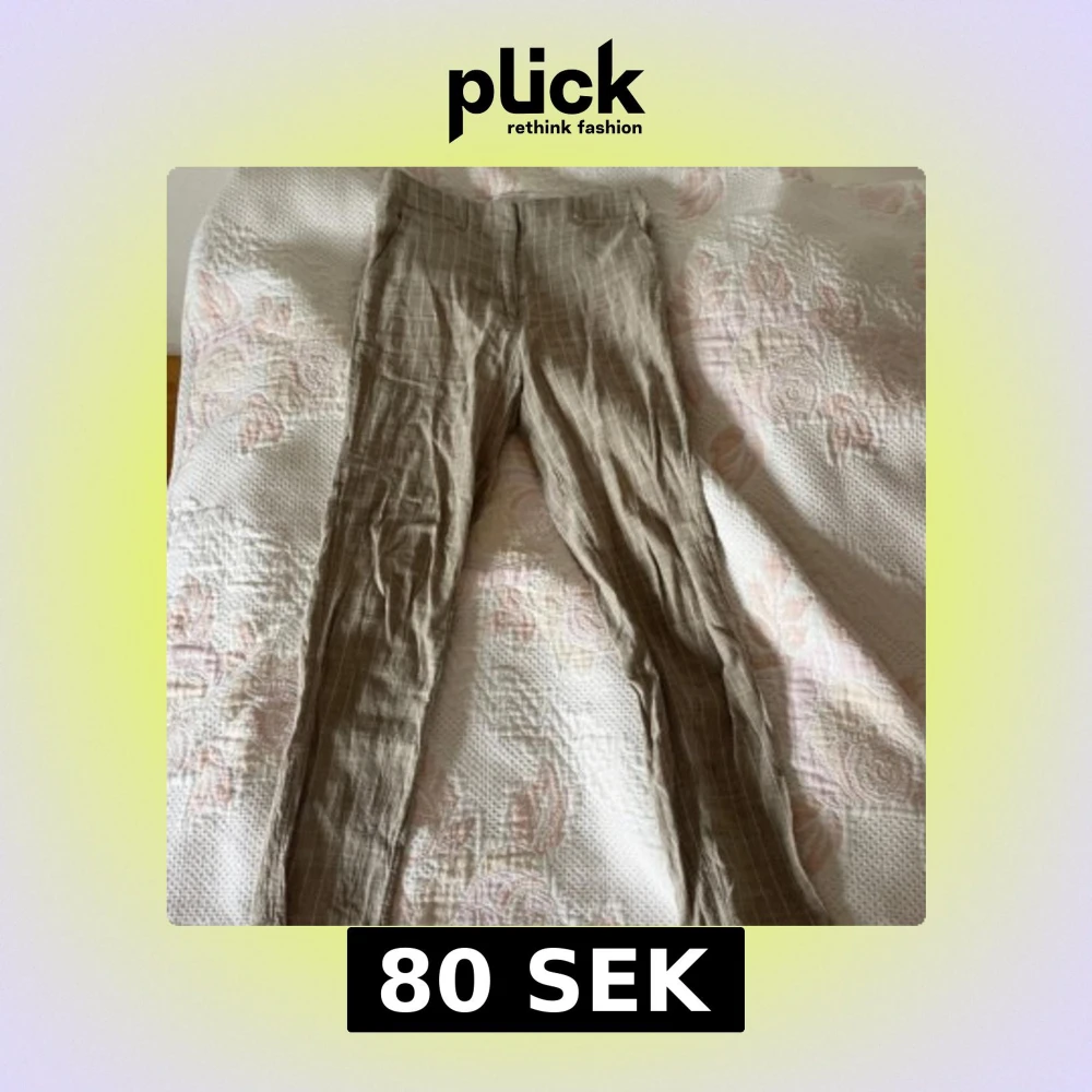 Snygga beige linnebyxor från Mango med tunna vita ränder. Byxorna har normal passform, hällor för bälte och raka ben. Perfekta för en chill och stilren look under varmare dagar.