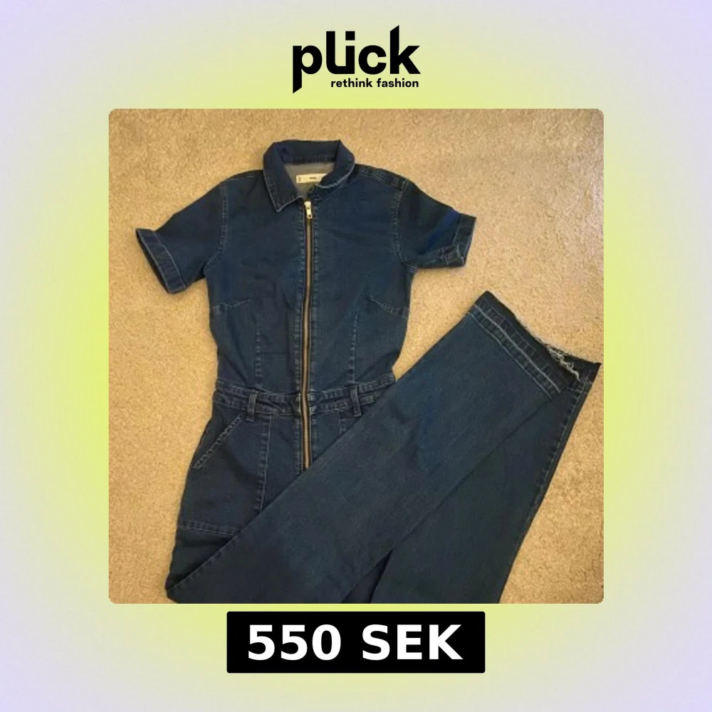 Snygg blå jeans jumpsuit, använd två gånger. Den är nedfållad i benen och passar mig i längden som är runt 176. Men det är inget som syns eller som tänks på när man har på sig den.