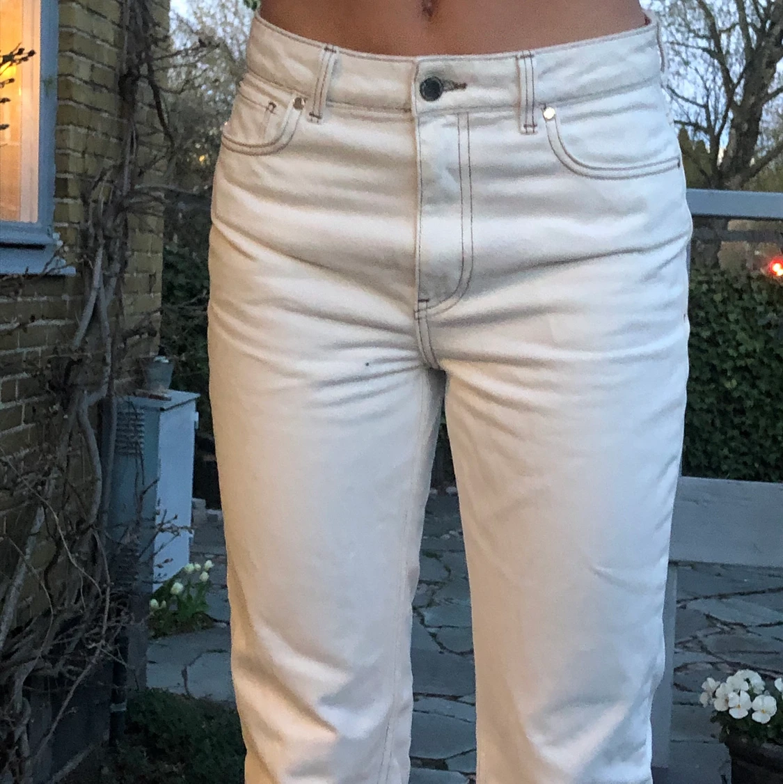 Vita vida jeans med sömmar från mango, köpt på plick och för långa för mig men blivit lite slitna längst ner av förra ägaren, inget som syns😊