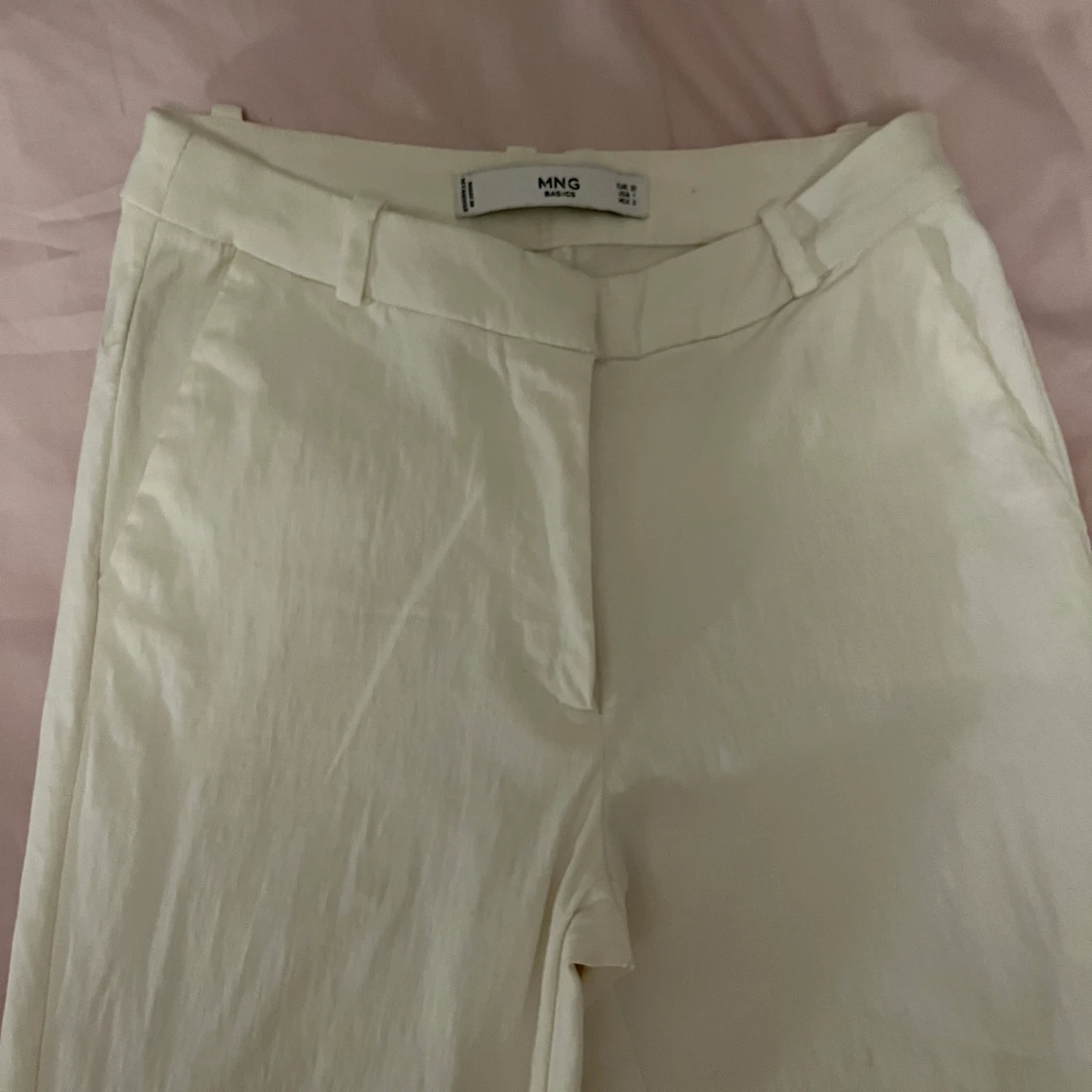 Korta capri-byxor från Mango med fickor på sidorna. Storlek XS. Fint skick, men innerknappen saknas, dock inget som påverkar funktionen.