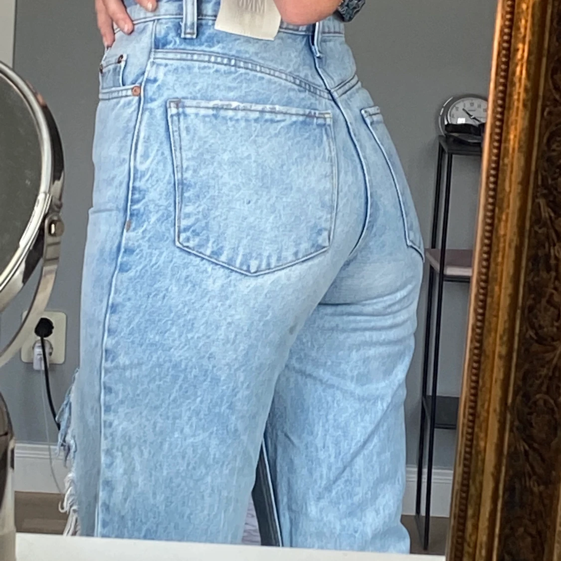 skitsnygga håliga straight högmidjade jeans, det större hålet har blivit lite upprivet men inget farligt💕