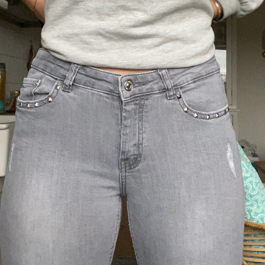 Gråa jeans med slitningar, nitar och hål från mango🤍🖤 stretchiga