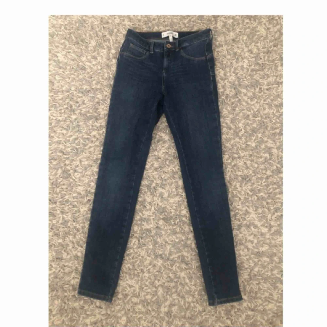 Ett par jeans från Mango som sitter tajt. De är i ett stretchigt material vilket gör att de är sköna att ha på sig. Jag är 162 cm och längden är bra!