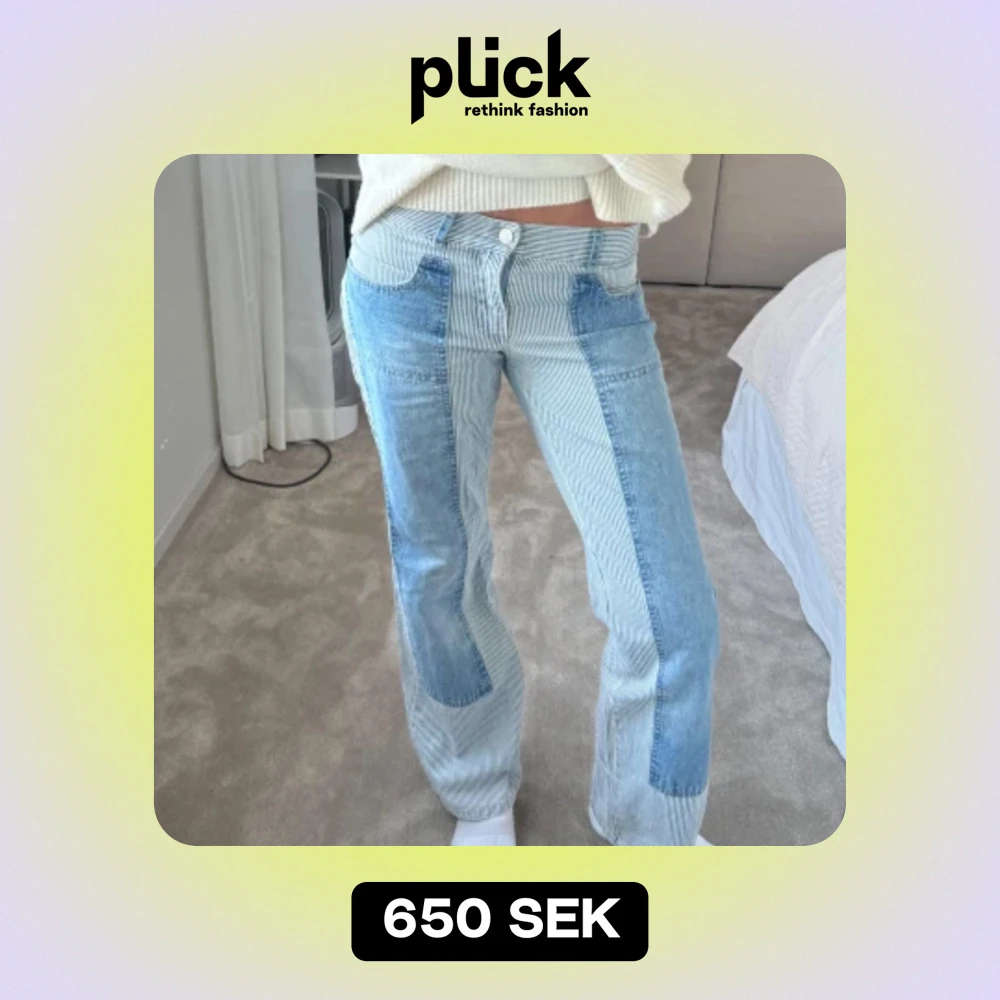 Coola lågmidjade randiga jeans med detaljer! Super snygga! Midjemått: 38cm Innebenslängd:77cm🩵☁️