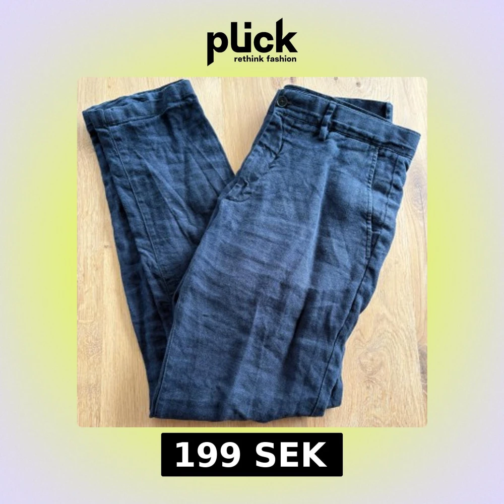 Marinblåa linnebyxor med normal passform från NN.07. Storlek 30/32 - 100% linne i bra skick.