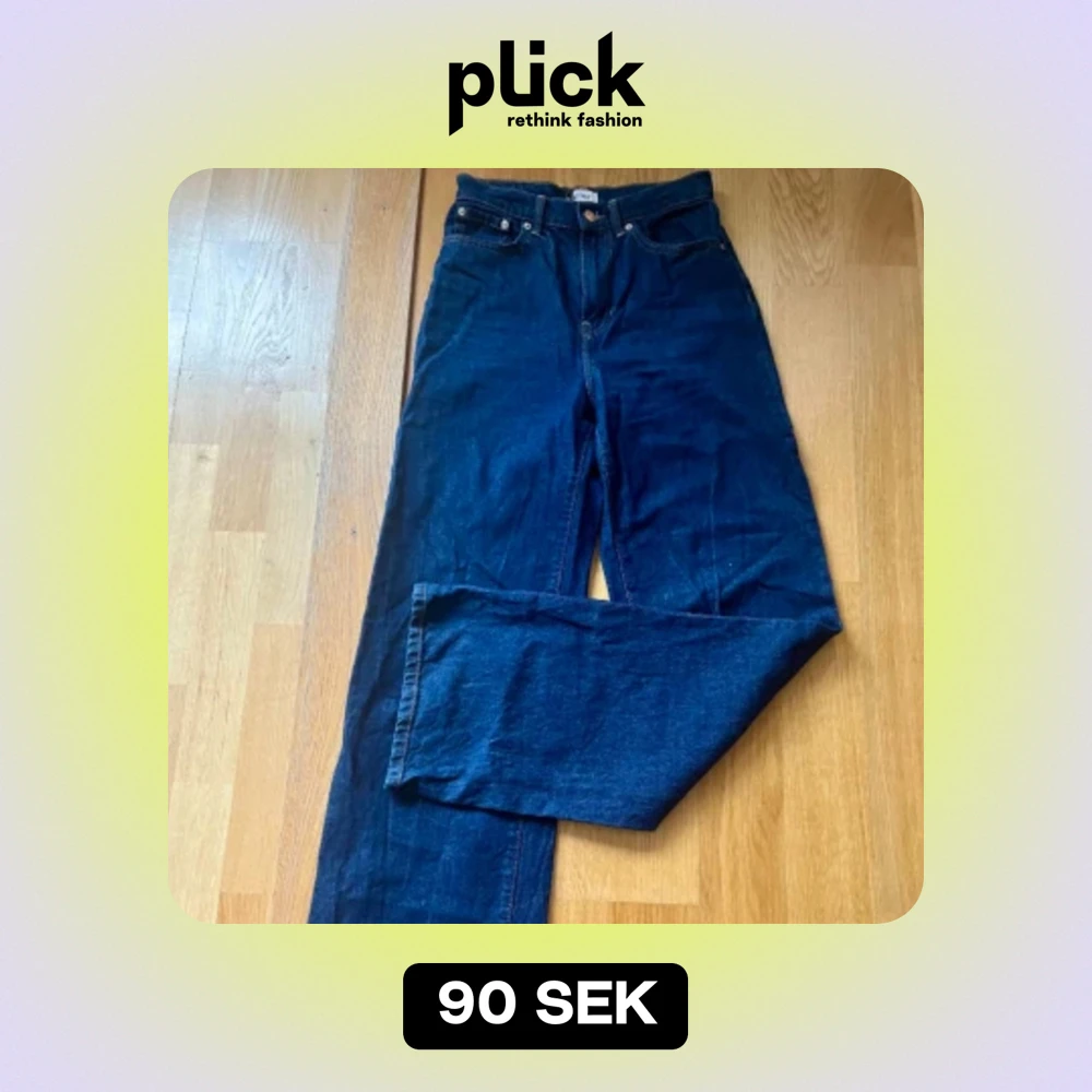 Marinblåa raka/utsvängda jeans. 5 fickor, dragkedja fram. Endast använda ett fåtal gånger.