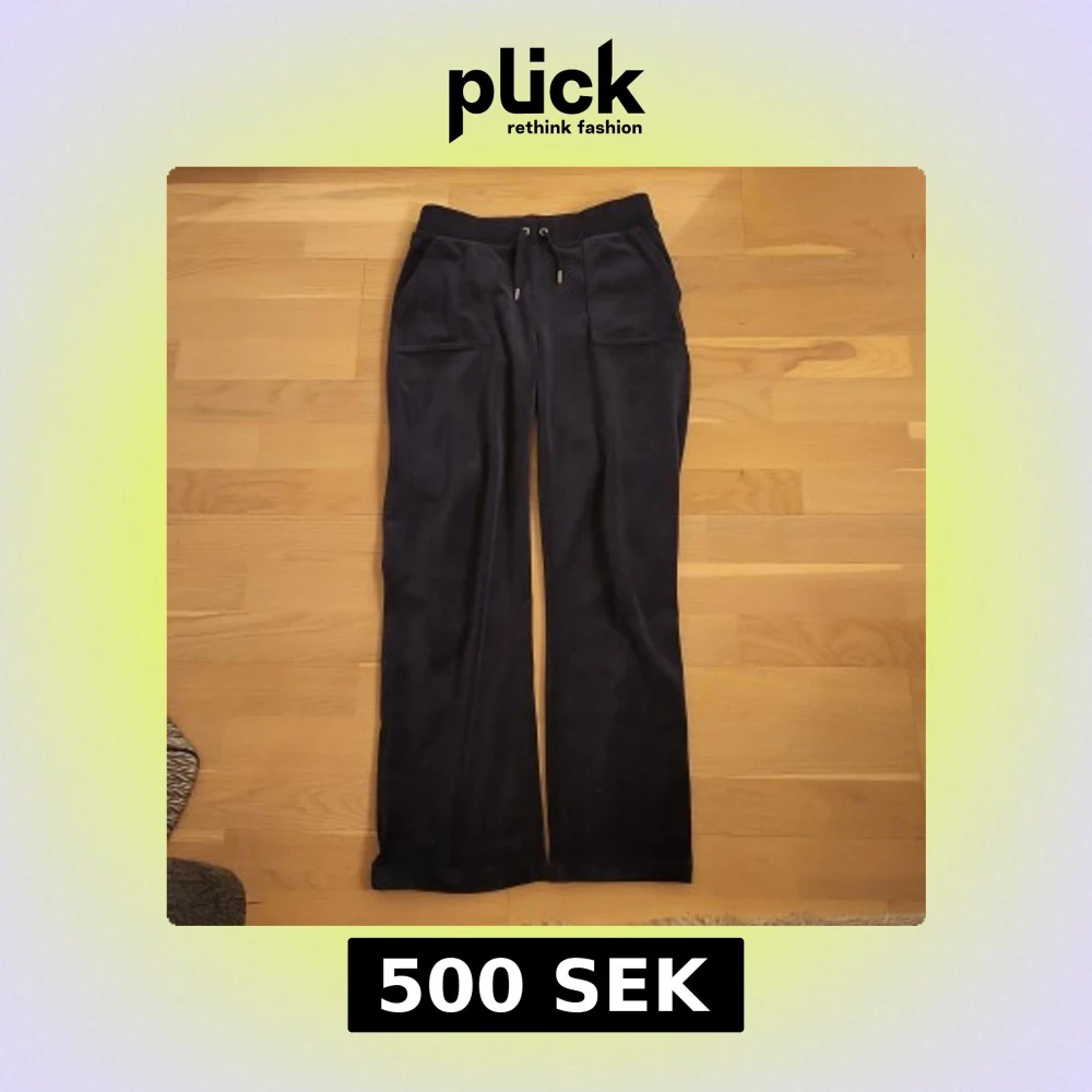 Säljer ett par svarta mjukisbyxor från Juicy Couture med broderad logga. Byxorna har en bekväm passform med resår och snörning i midjan samt fickor både fram och bak. Dem är använda få gånger och säljer dem för att dem är förstora