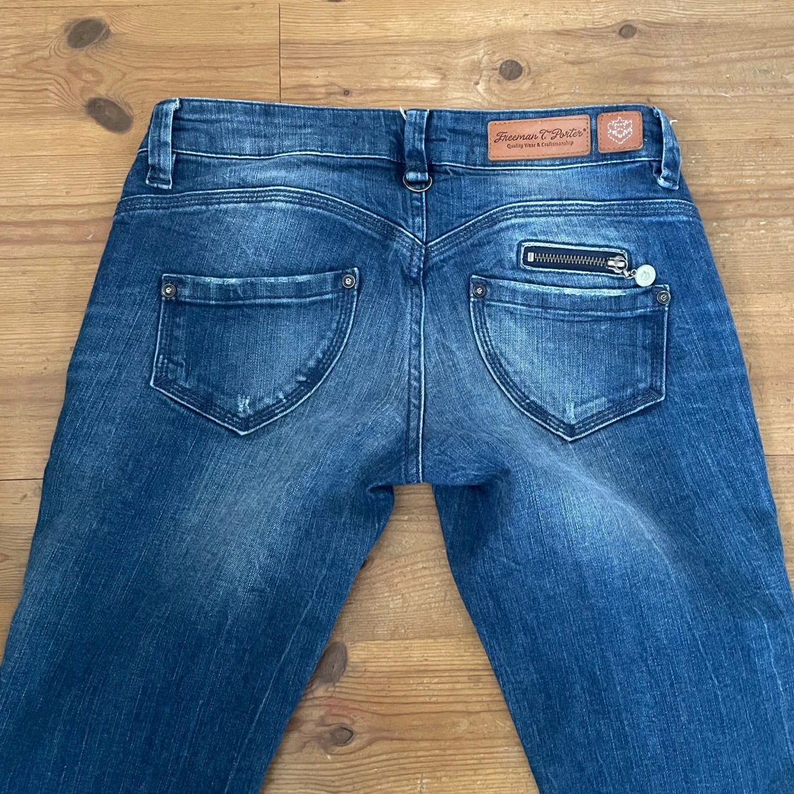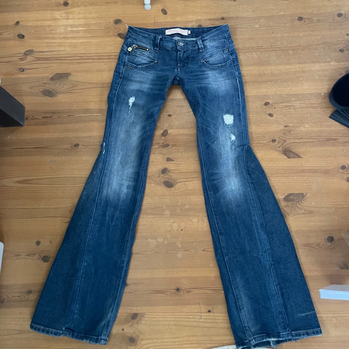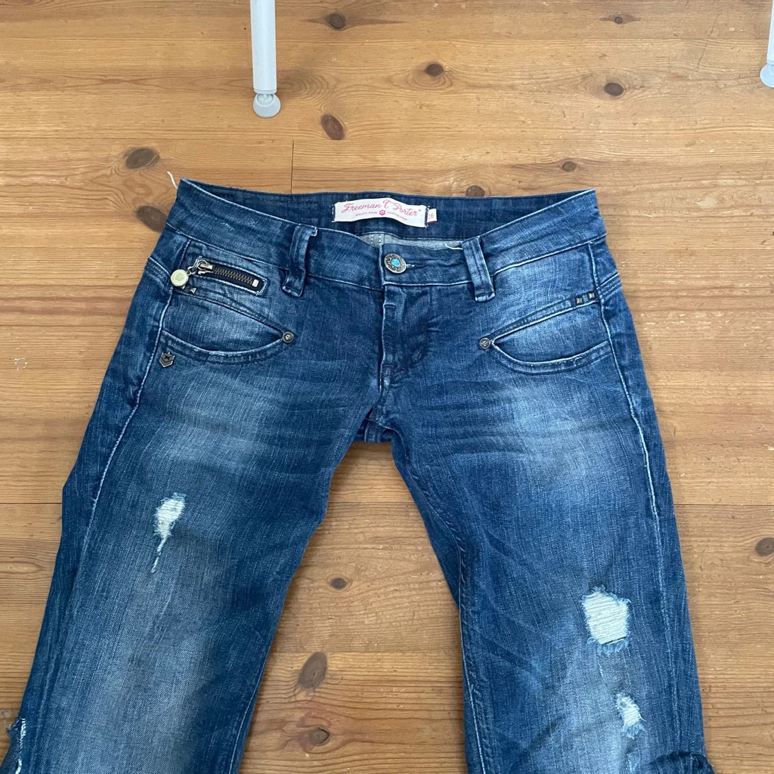 Säljer dessa så snygga lågmidjade jeans med slitningar på benen. Jeansen är omsydda till bootcut och i en mörkblå färg. Midjemåttet är 36 cm tvärs över midjan, innerbenslängd 84 cm. Kontakta mig privat vid frågor eller liknande💕💕