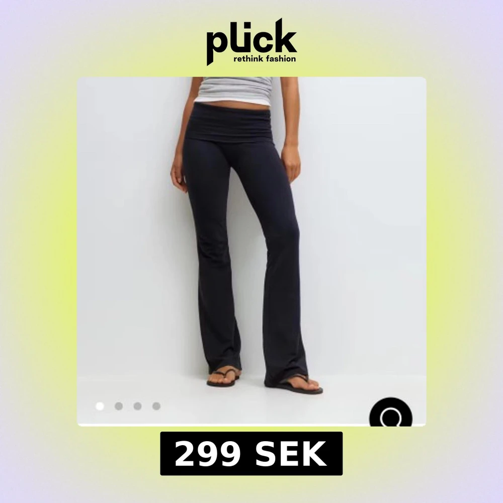 Marinblå bootcut yogabyxor med låg midja och stretchigt material. Snygg passform som sitter tight upptill och släpper ut mot bensluten. Perfekta för en chill look eller till träning. Mjuka och bekväma med bred linning. Säljer då dem är i fel storlek, använda 1 gång men vill köpa nya i rätt storlek 🩷 pris kan diskuteras! Köpta för 359kr