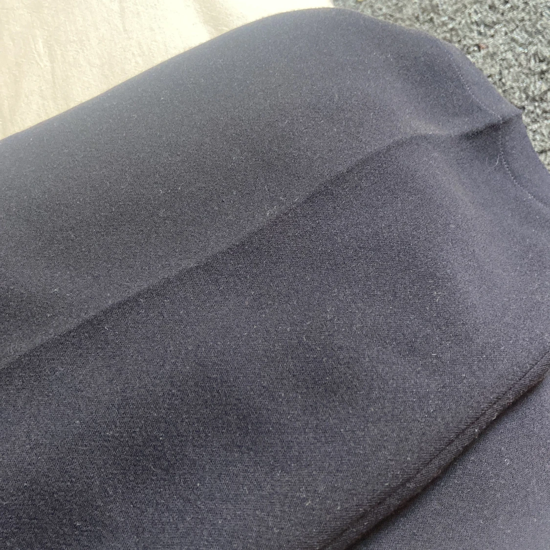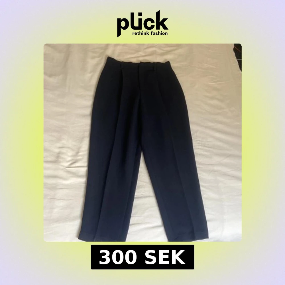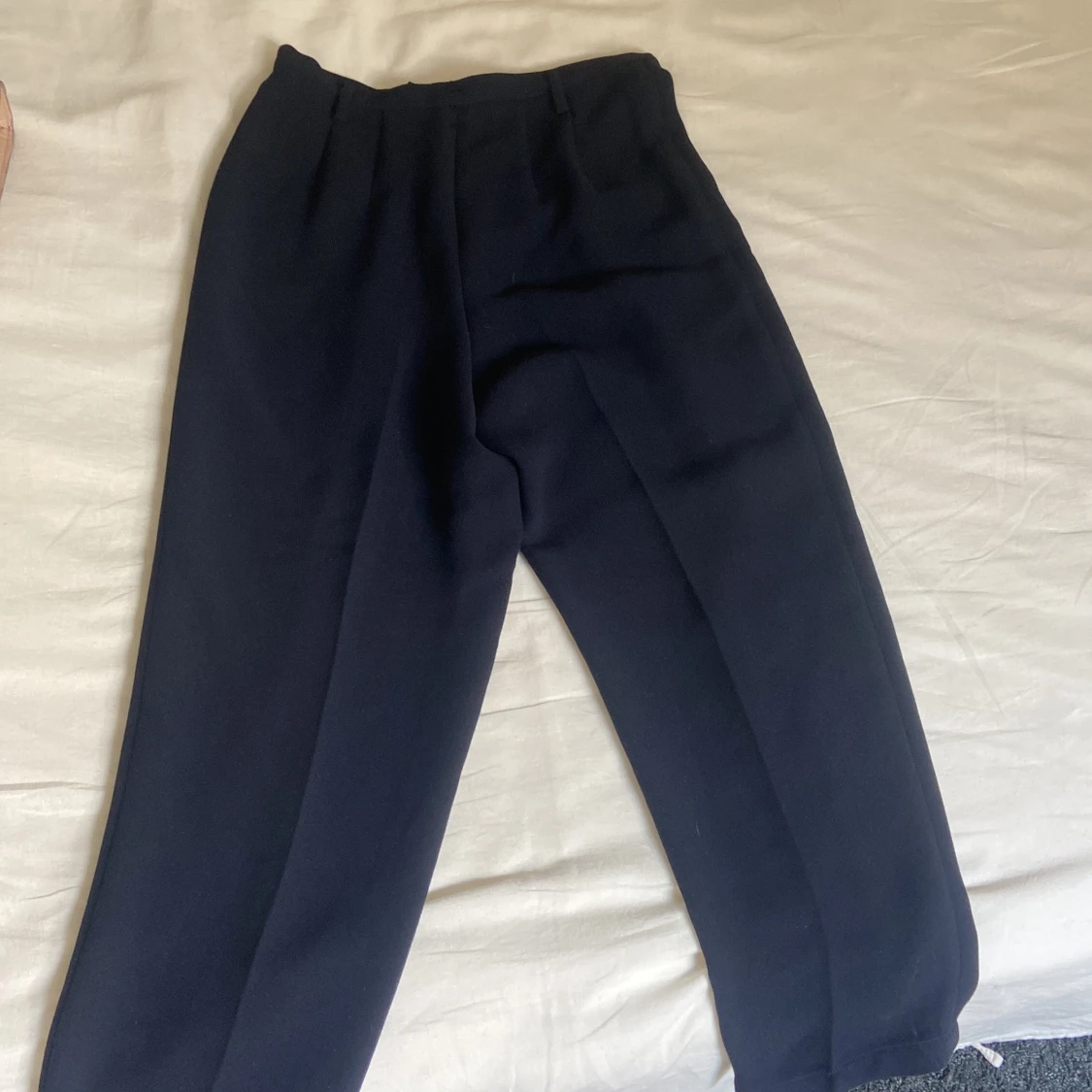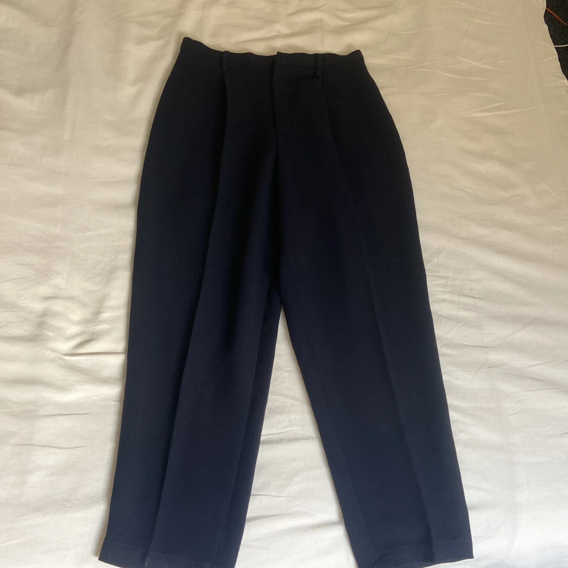 Marinblåa kostymbyxor med hög midja och rak passforme. Byxorna har pressveck framtill.