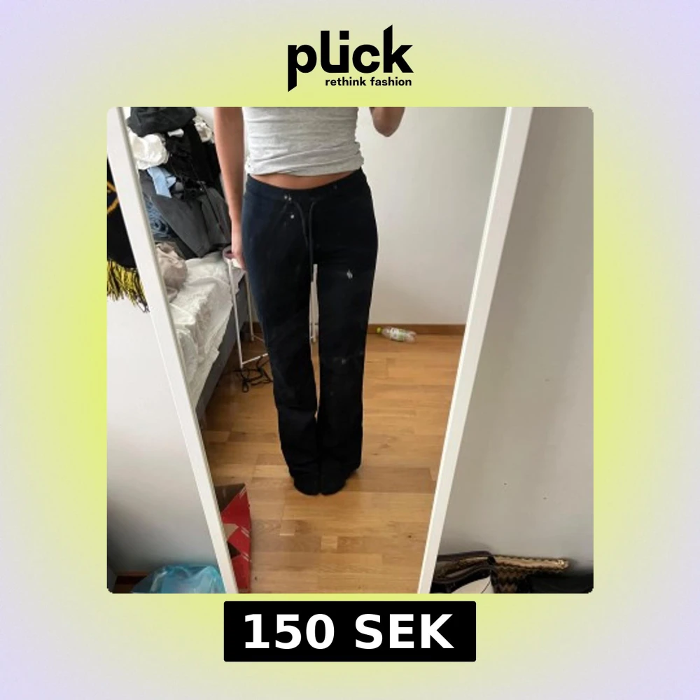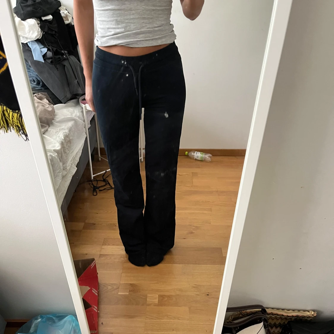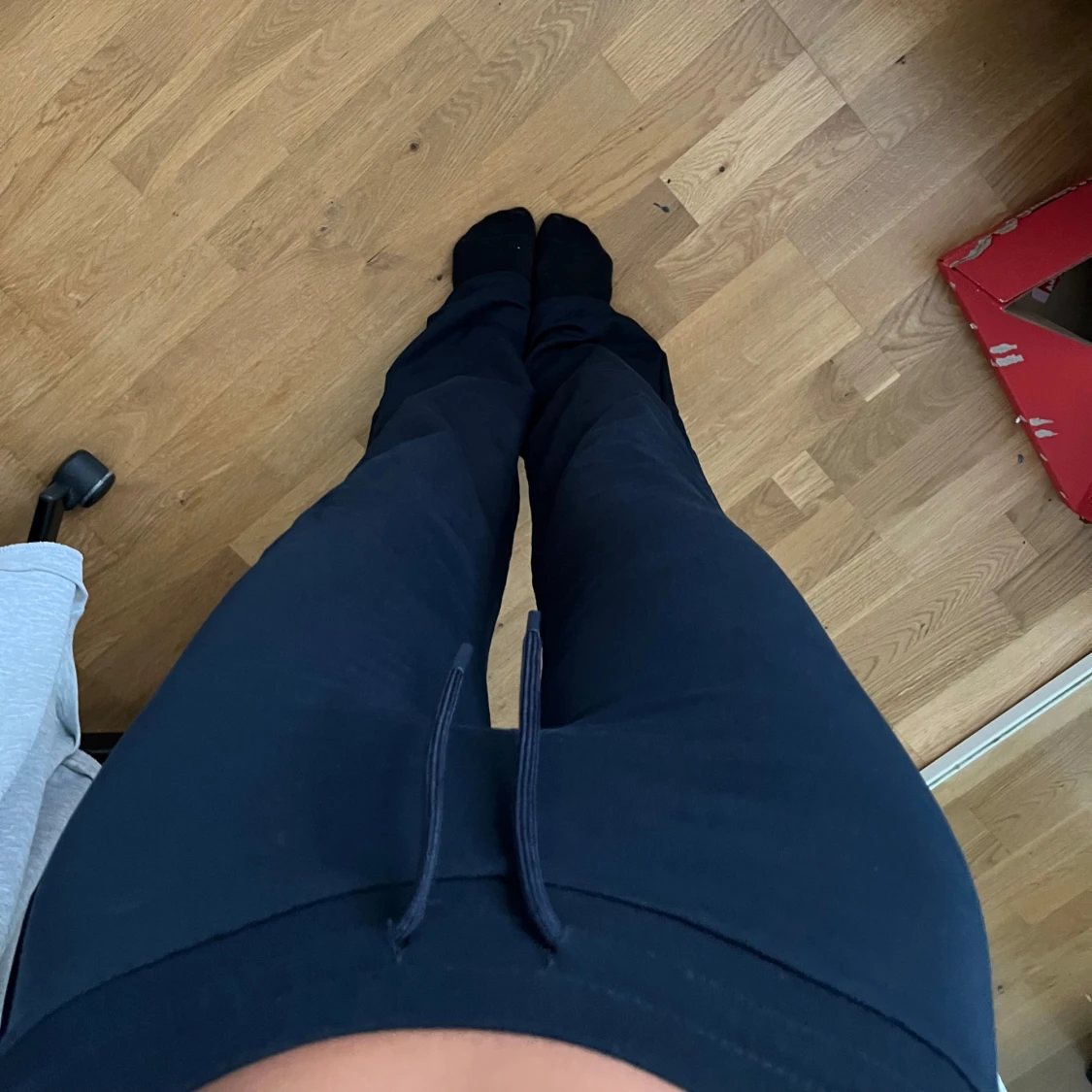 Low waisted marinblåa mjukisbyxor, dem är i storlek Xs och jag är 168 cm❤️