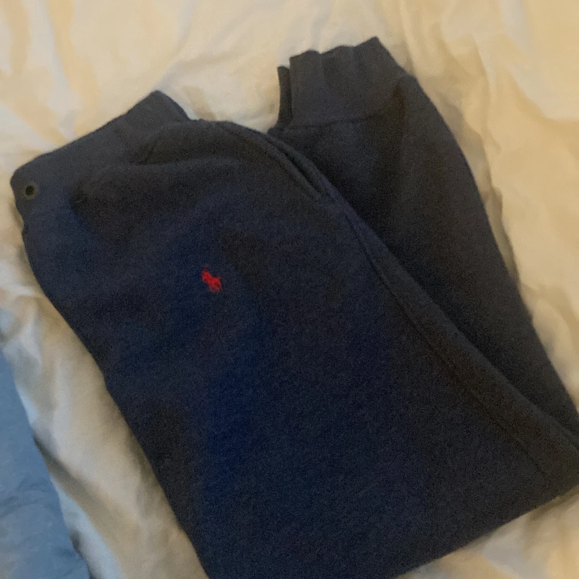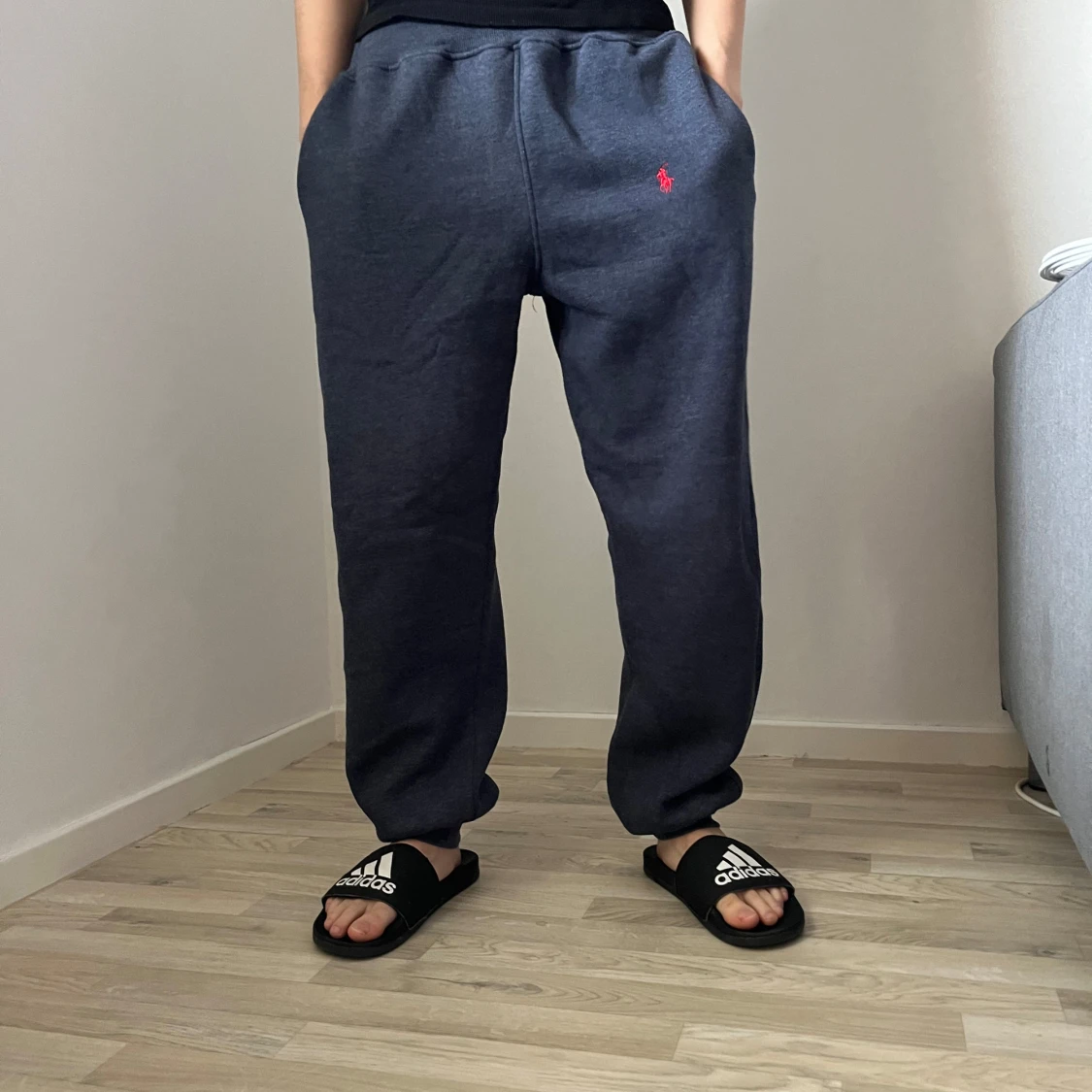 Supermysiga mjukisar från polo i strlk L-XXL, bra skick men snöret saknas. Fick dom i present så jag är osäker på om dom är äkta. Färgen är mörkt gråblå. Öppen för prisförslag .