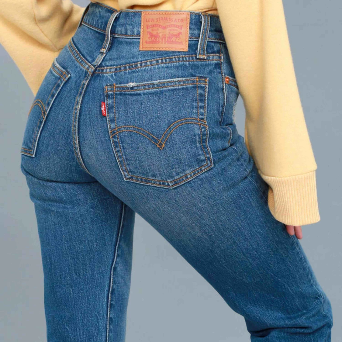Ett par skitsnygga Levis wedgie jeans. Rak modell och sitter bra över rumpan. Längden och passformen ser ni på andra bilden. Väldigt sköna jeans med lite stretch. Snygg touch med lite fransar längst nere. Inköpta för 1199kr.