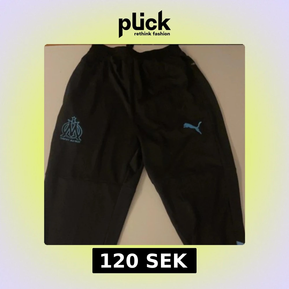 Säljer ett par svarta byxor från Puma med Olympique de Marseille-logga. Säljs för bra pris
