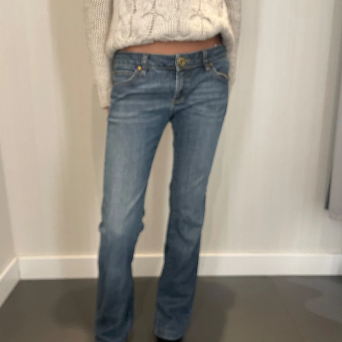 Snygga ljus blå jeans från Massimo Dutti med en klassisk design. De har en låg midja och en bootcut-stil som ger en avslappnad look. 💓💓