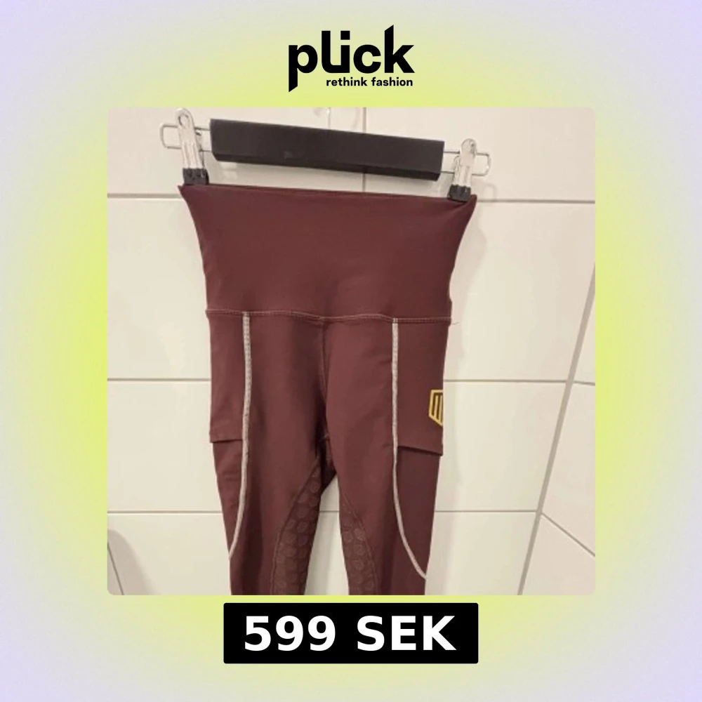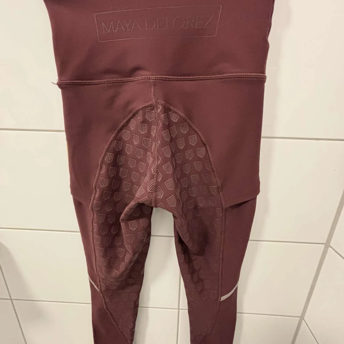 Snygga ridbyxor från Maya Delorez med hög midja, mobilfickor på sidorna och silikongrepp på insidan av benen och sätet. Tillverkade i stretchigt syntetmaterial med kontrastsömmar och logga på benet.