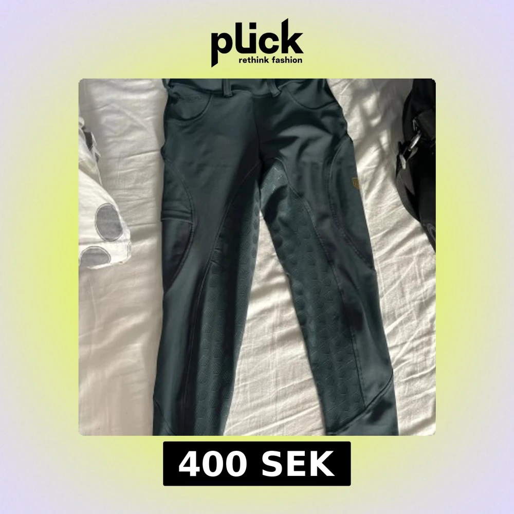 Snygga gröna ridbyxor från Maya Delorez med hög midja och tight passform. Byxorna har praktiska fickor och en stilren design med diskreta mönsterdetaljer. Perfekta för ridning och ger en bekväm känsla i sadeln. Säljer för 400kr, köpta för 1299kr. Knappt använda, som nya 😊