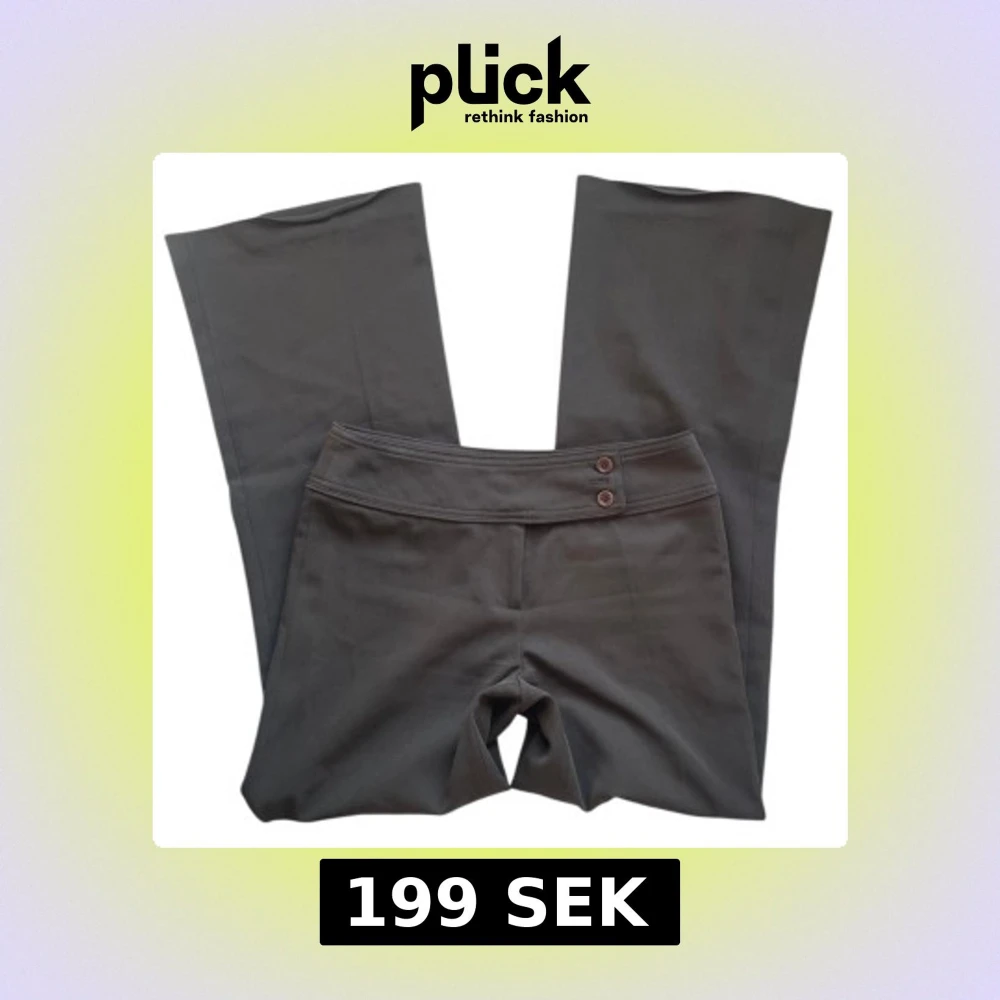 Mid-rise mörkbruna-svarta bootcut kostymbyxor med två framfickor 🤎MIDJEMÅTT: 75 cm + stretch. INNERBENSLÄNGD: 75 cm. GRENDJUP: 23.5 cm. ANKELVIDD: 26.5 cm. *pytteliten fläck på baksidan, märks knappt. Jag brukar ha strl S i byxor & är 1,67!