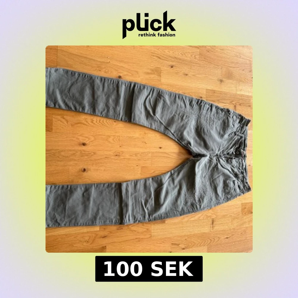 Snygga byxor från Please i en gröngrå nyans med slitna detaljer. Några sömmar släppt - se bilder.