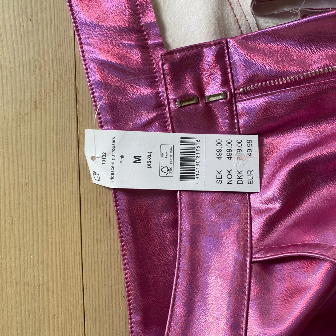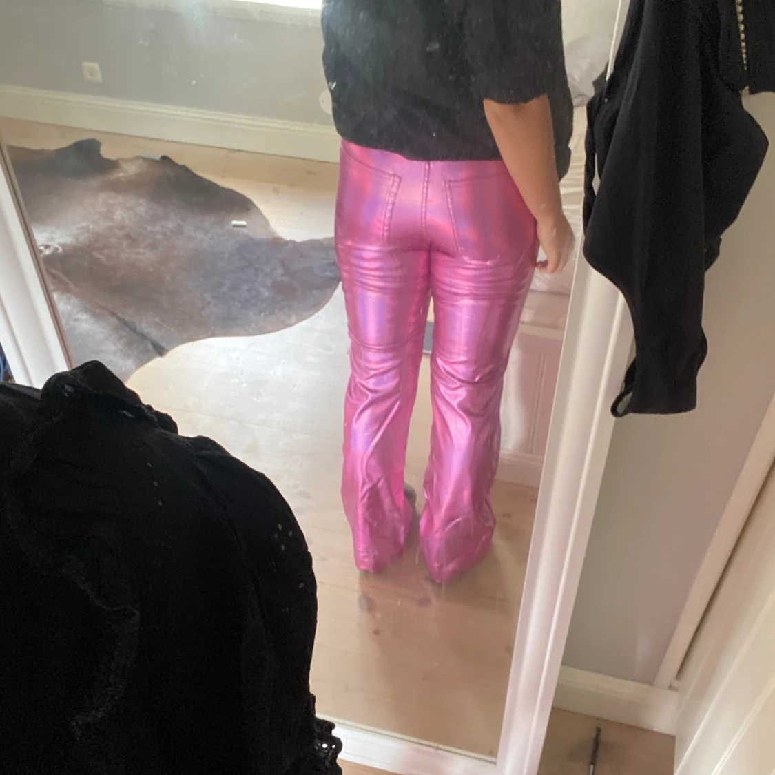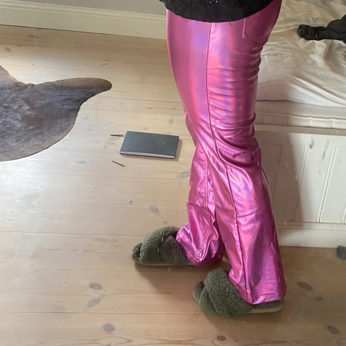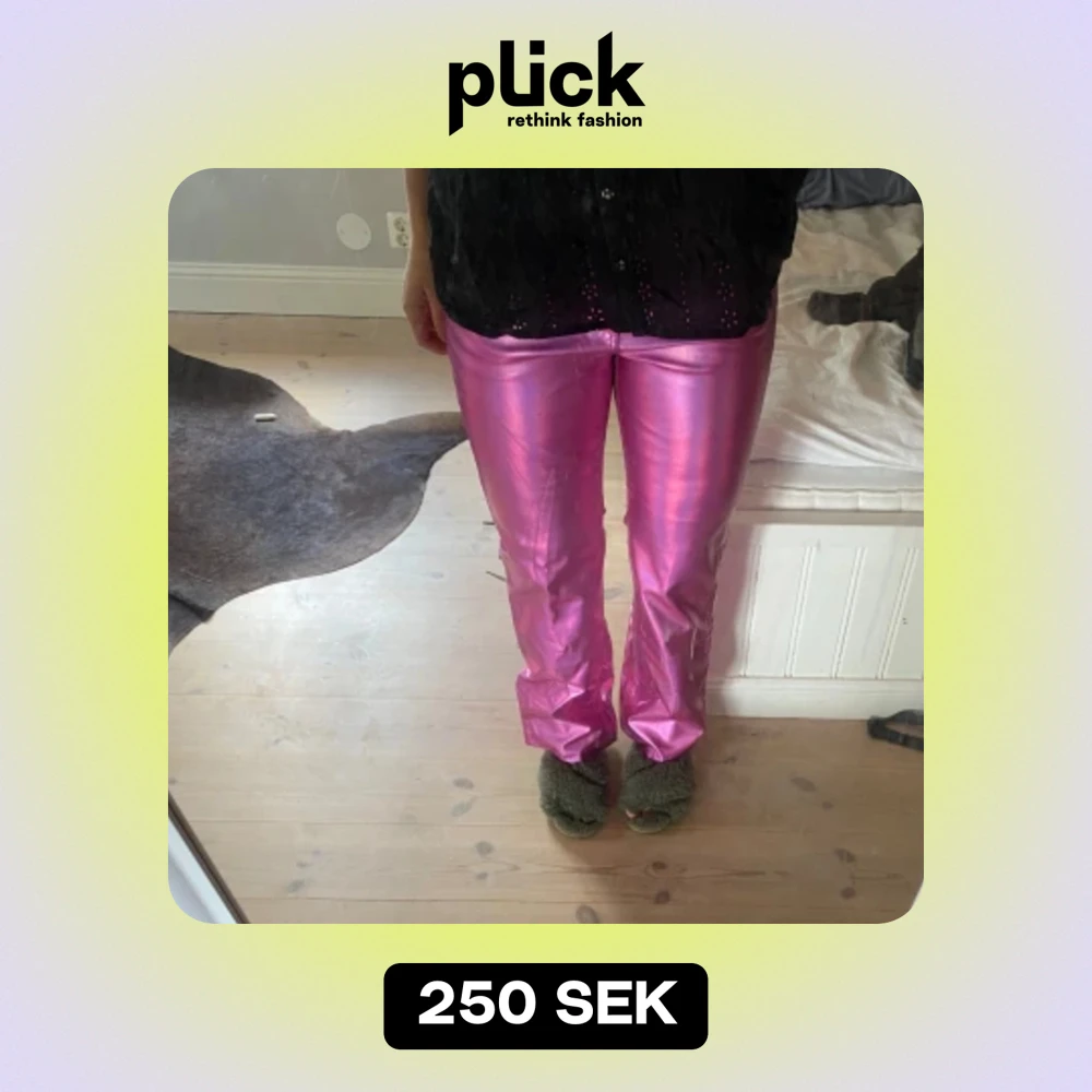 Säljer dessa oanvända metalliska byxorna i rosa från Gina. Perfekt för temafester🪩🪩💅 köpte för 500kr
