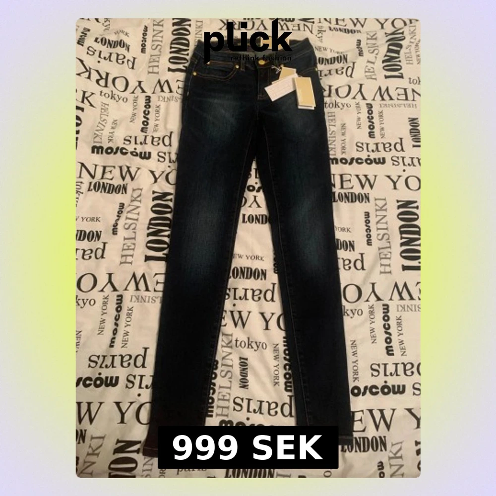 Unika Micheal Kors Selma High Waist Skinny Jeans! Säljer dessa sällsynta och otroligt fina selma high waist skinny jeans från Micheal Kors, NY OANVÄND MED ETIKETTEN KVAR PÅ PLAGGEN (se bild) :) Perfekta jeans för dig som är ute efter en lyxig designer denim med en vintage 2000-talskänsla!! Storlek: 24 (motsvarar US storlek 00/XXS) Färg: mörkblå/indigo denim med snygga guld detaljer