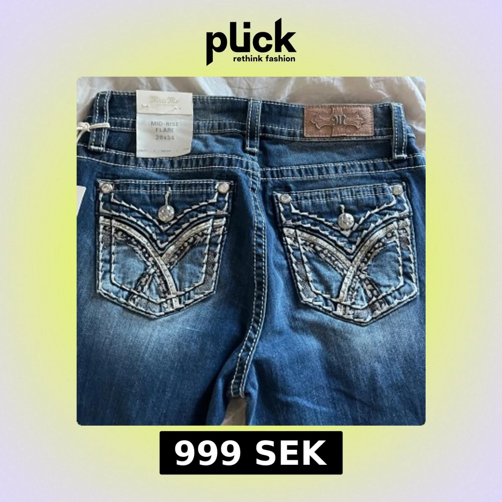 säljer snygga blåa mid-rise flare jeans från miss me, aldrig använda då jag köpte fel storlek. storlek 28x34 | ytterbenslängd: cirka 110cm | innerbenslängd: cirka 85cm | midjan i omkrets: cirka 75cm men väldigt stretchiga! | skriv vid frågor🩷