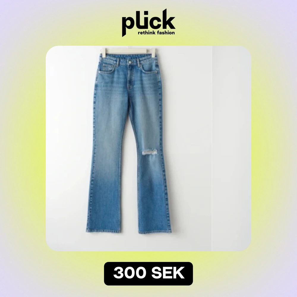 mid waist flare jeans från gina med hål k knät, perfekt blåfärg och sitter jättebra, men säljer dem för att de jag blivit för små