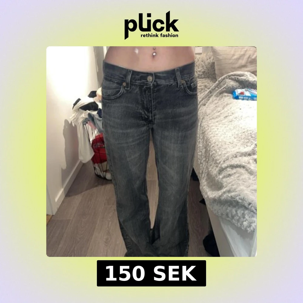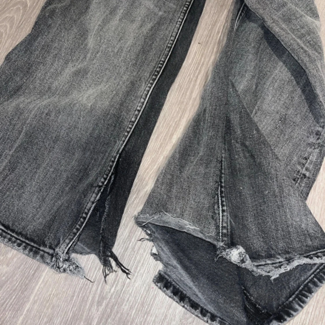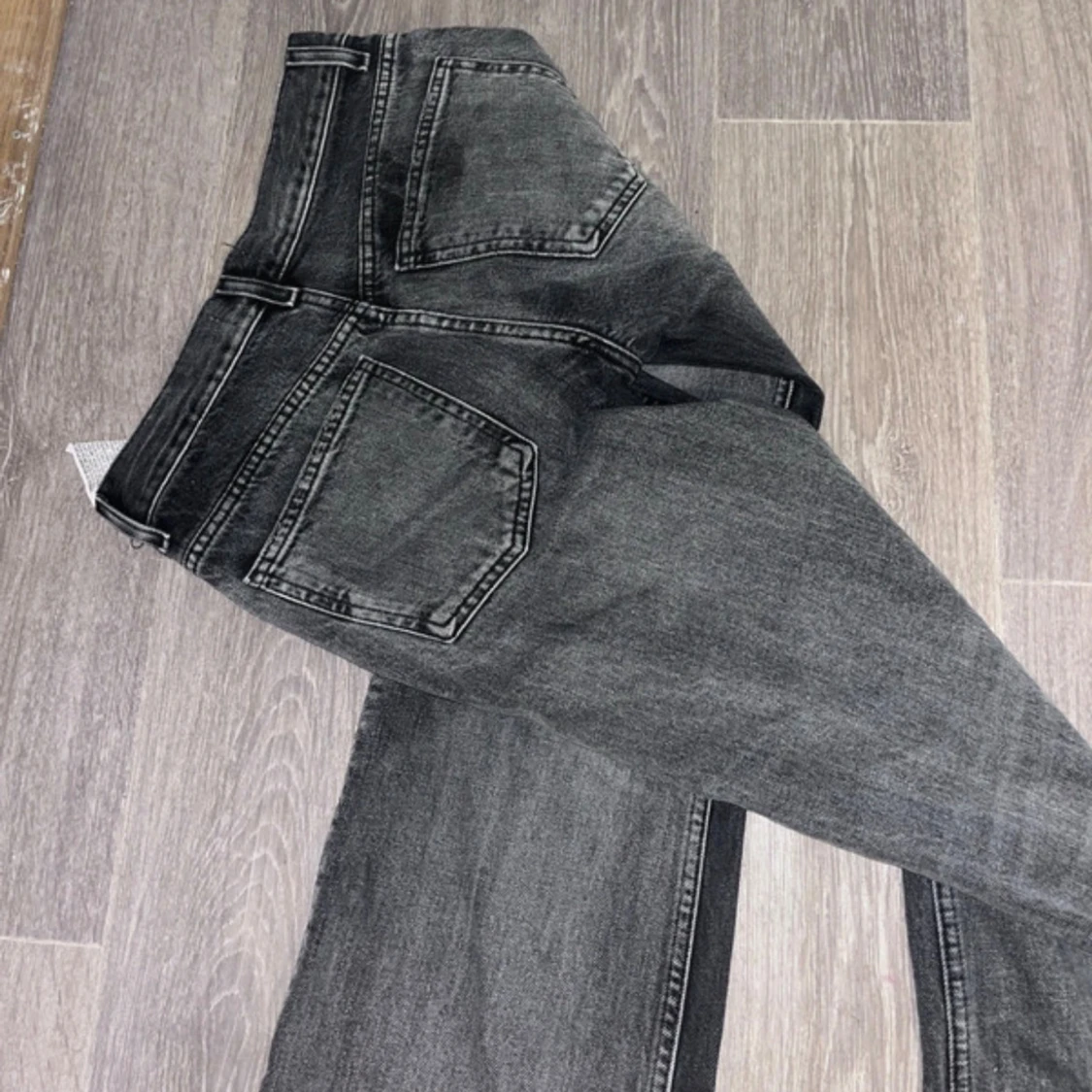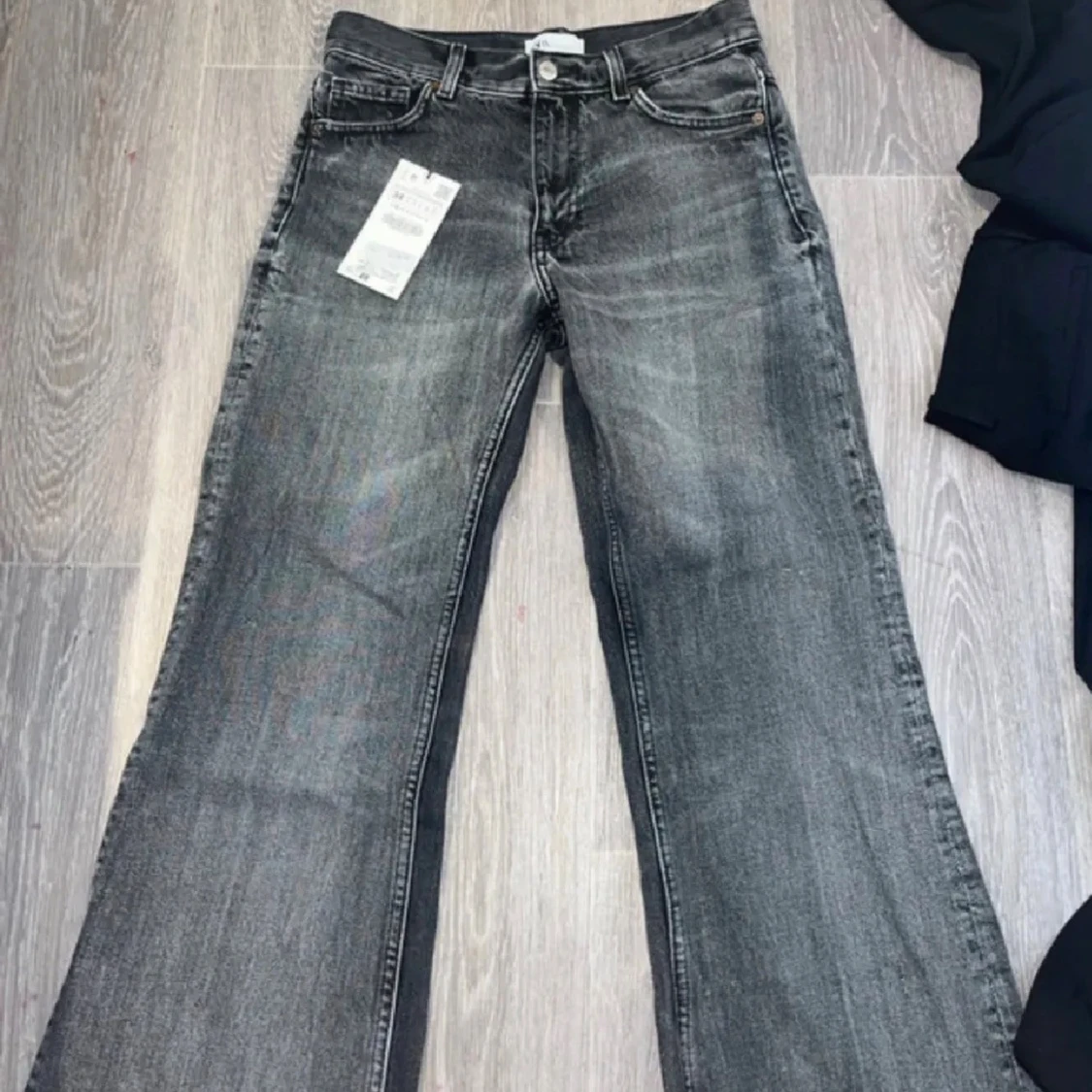 Säljer en par utsvängda jeans från Zara i mid waist-modell. ✅ Storlek: XS / 34 ✅ Köpta för 399 kr (prislapp kvar) – säljes för 150 kr ✅ Fint skick! 👉 Det enda är att längst ner vid fötterna har jag klippt upp lite. För att de ska bli helt perfekta behöver de sys upp igen. Jag själv vill inte göra det eftersom jag inte vill riskera att sy fel – men för den som kan (eller lämnar in dem snabbt hos en skräddare) blir de som nya igen!